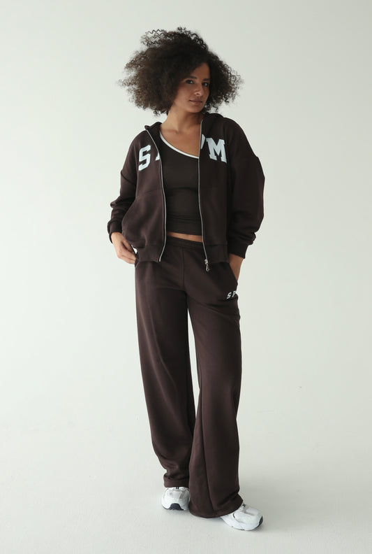 მუქი ყავისფერი სწორი სპორტული შარვალი