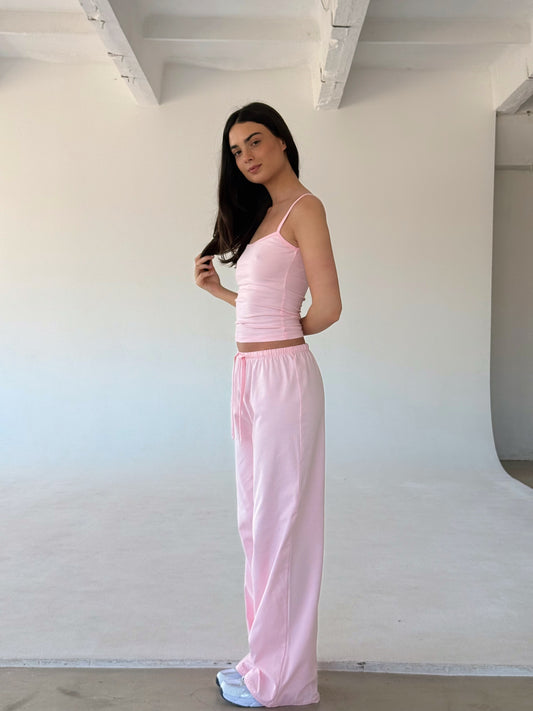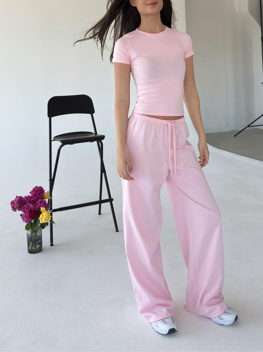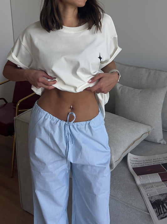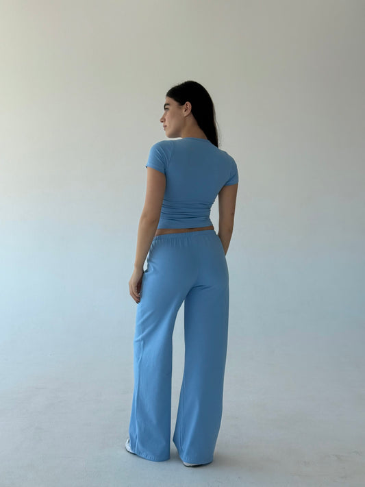 გაყიდულიაცისფერი ლაუნჯ შარვალი ზოლებით