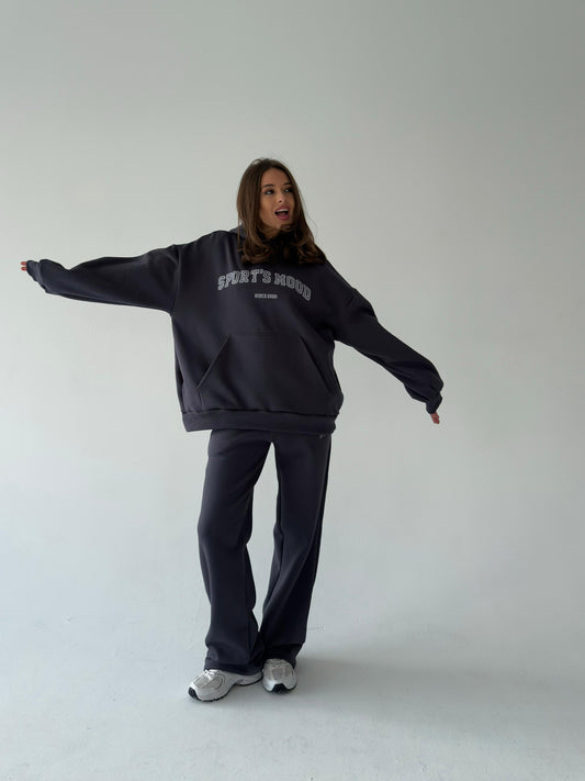 მუქი ნაცრისფერი დათბილული ჰუდი