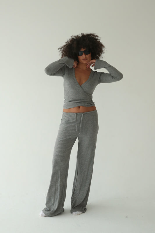 ნაცრისფერი ნაქსოვი ჟაკეტი