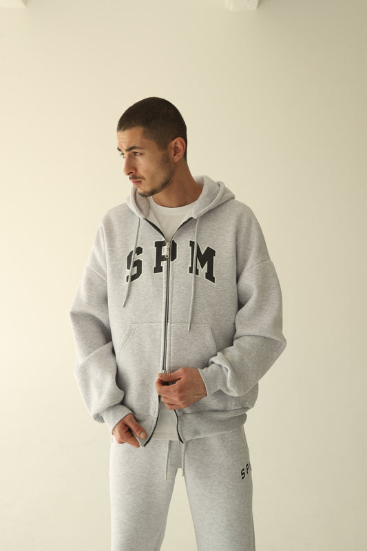 Men's Melange gray warm oversize zip-up hoodie