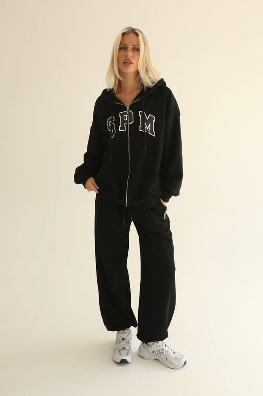Black oversize zip-up hoodie