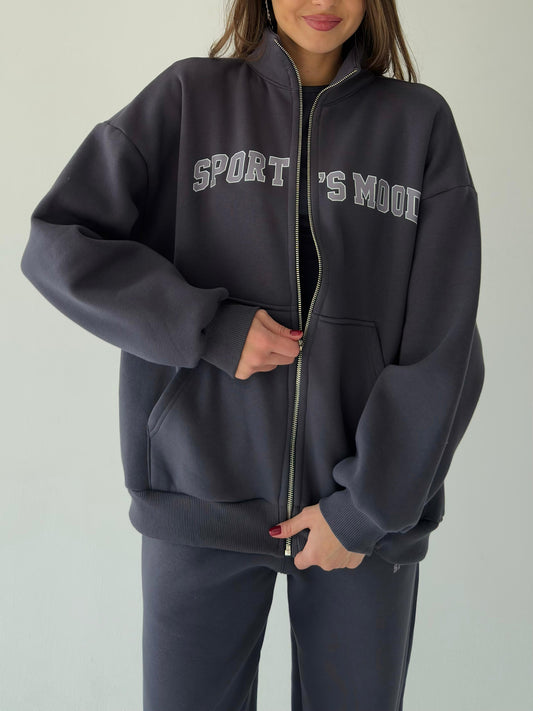 Dark gray warm zip-up hoodie