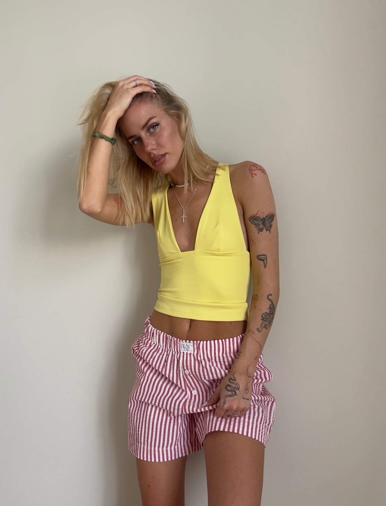 This top is a wardrobe staple for day or night. Made from stretchy fabric. It has a smooth close fit and a low back.