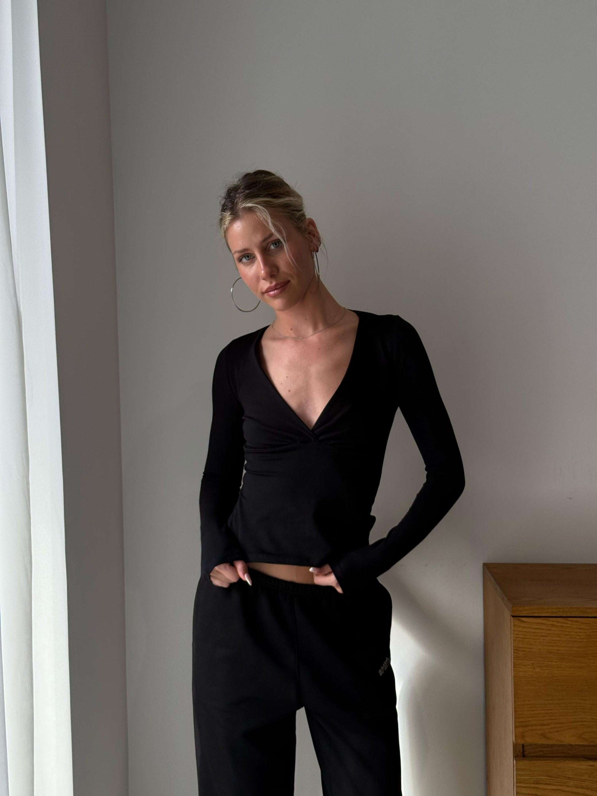 Stay cozy and stylish with our V-neck crossed cotton top. Featuring a flattering crossed design and long sleeves, this top offers both comfort and a chic, relaxed look. Made from soft, breathable cotton, it’s perfect for lounging at home or pairing with sweatpants or any casual piece in your wardrobe. Versatile and effortlessly stylish, this top is a must-have for your casual collection.