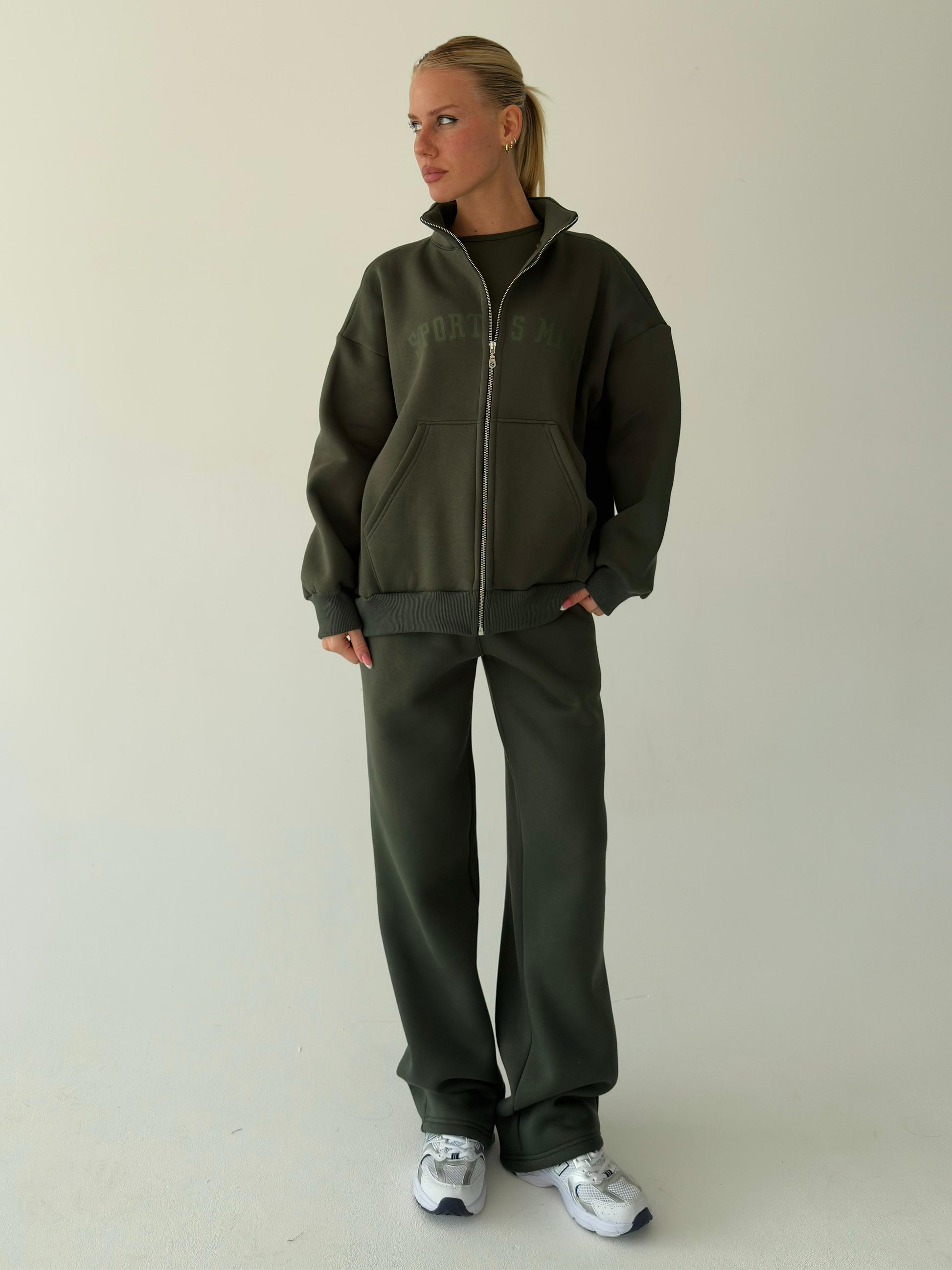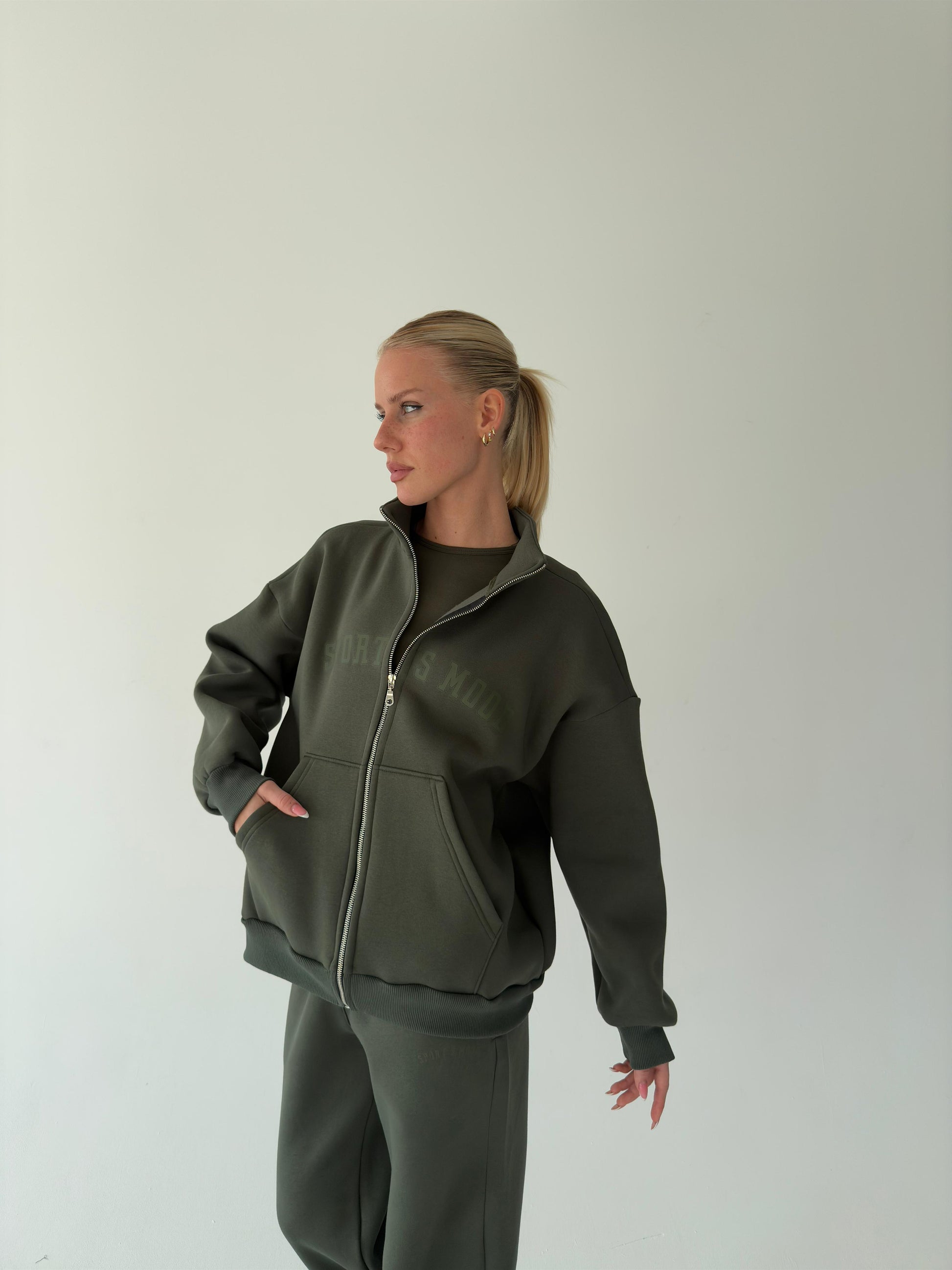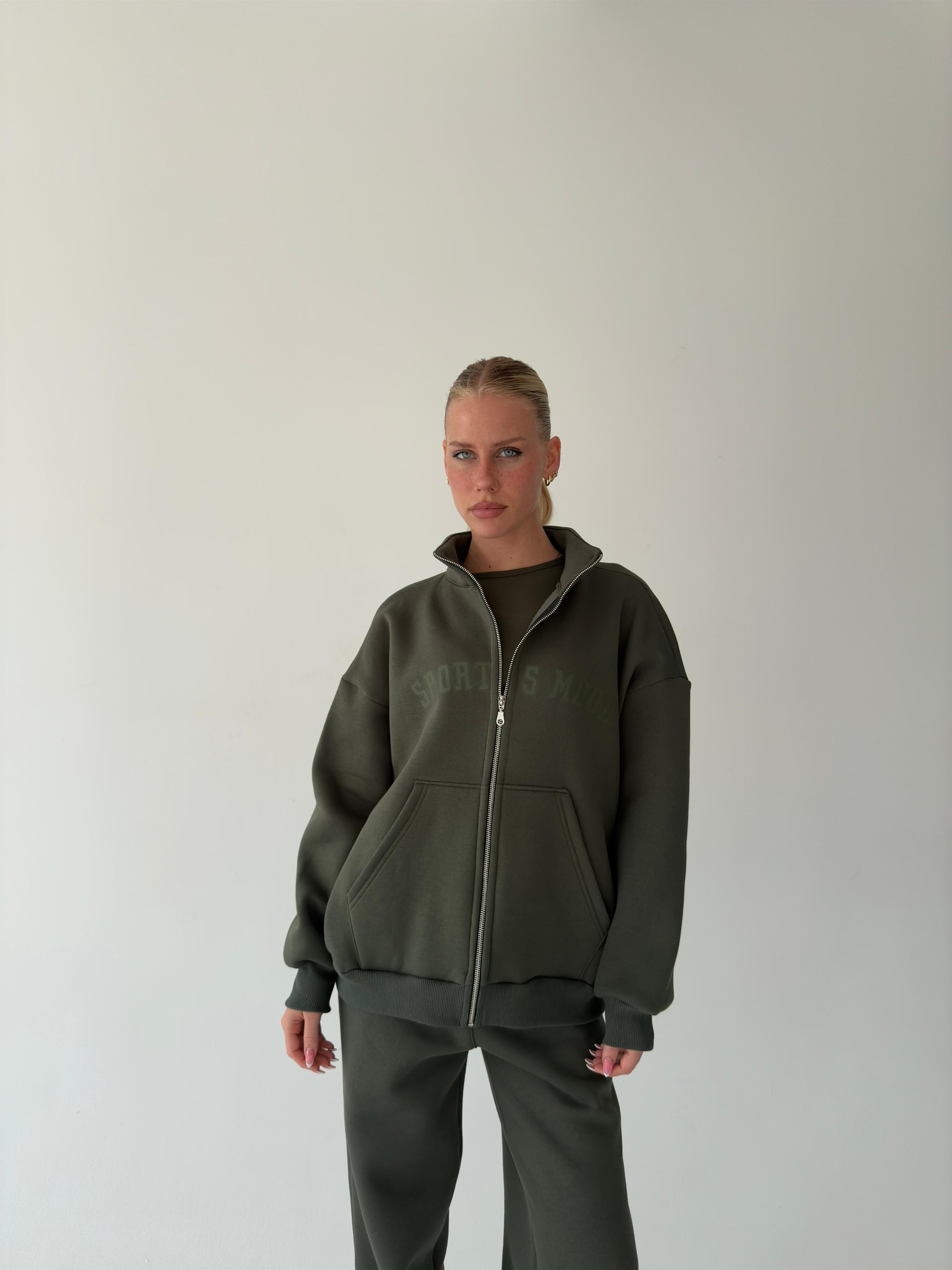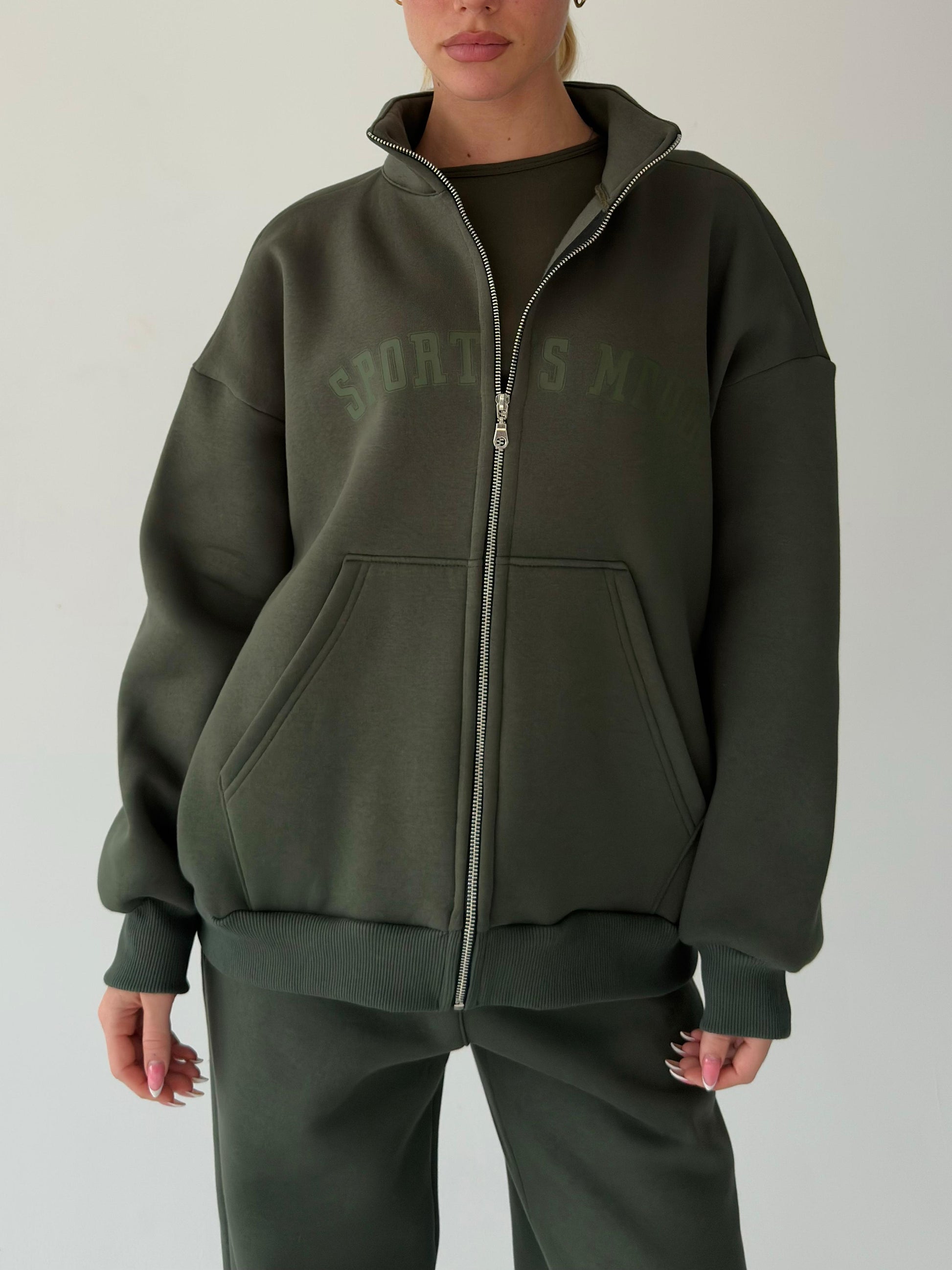 Oversized, warm, Full Zip hoodie is a comfy choice for everyday activities. Made from Organic Cotton Fleece-back fabric. Featuring dropped shoulders, graphic logo, zip front and pockets.