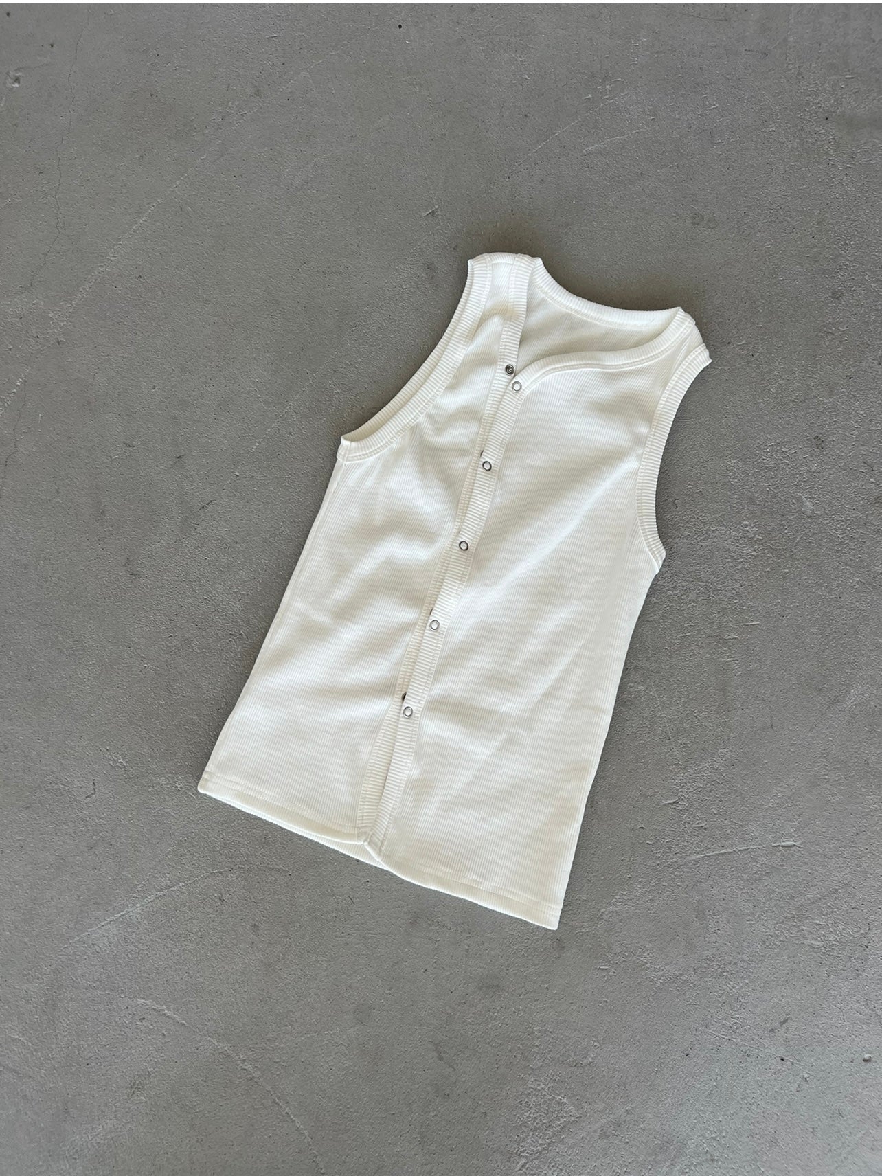 Tank top is made of ribbed-knitted cotton. Main detail is metallic buttons. You can style it with almost everything.