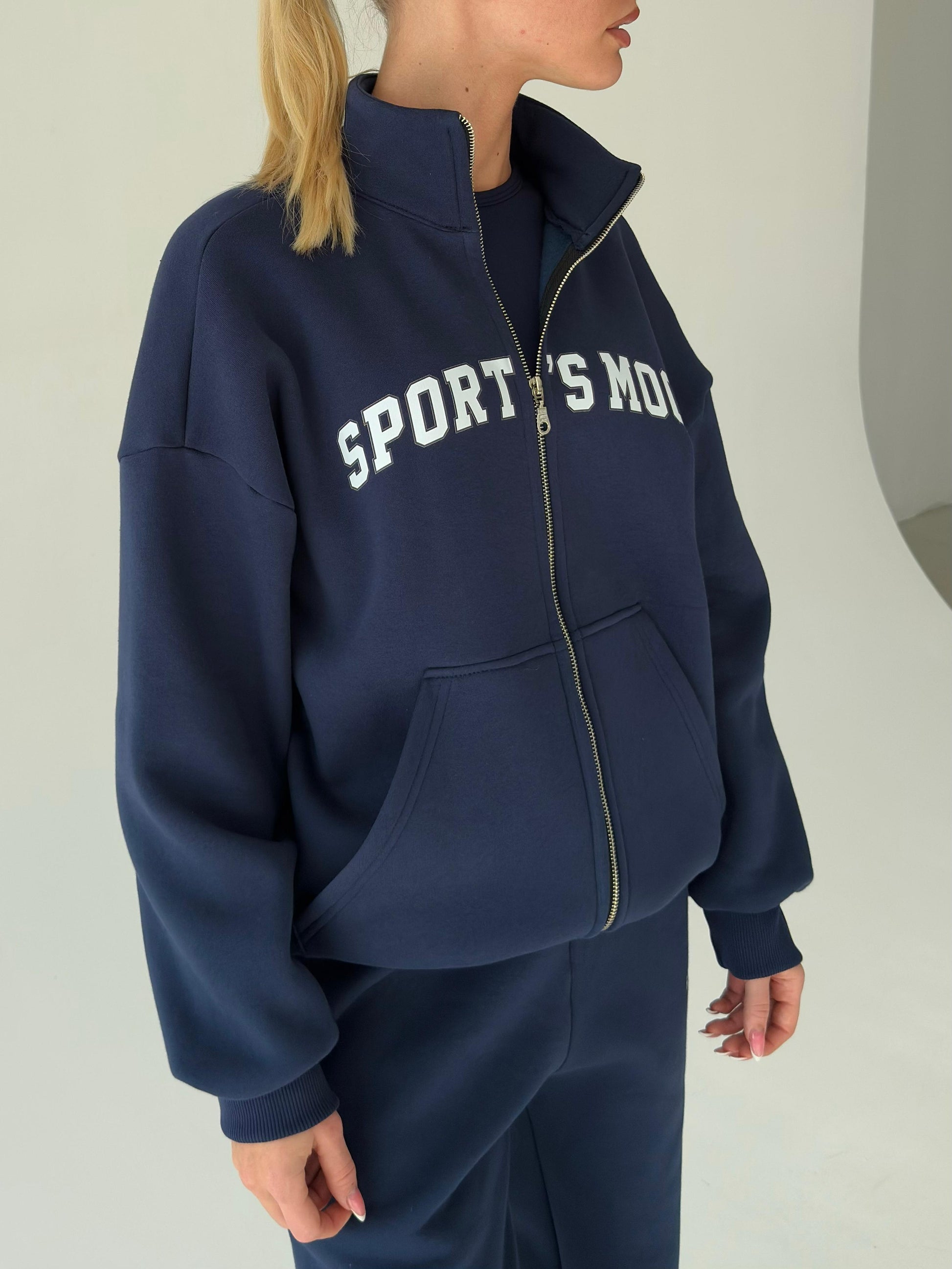 Navy blue warm zip-up hoodie