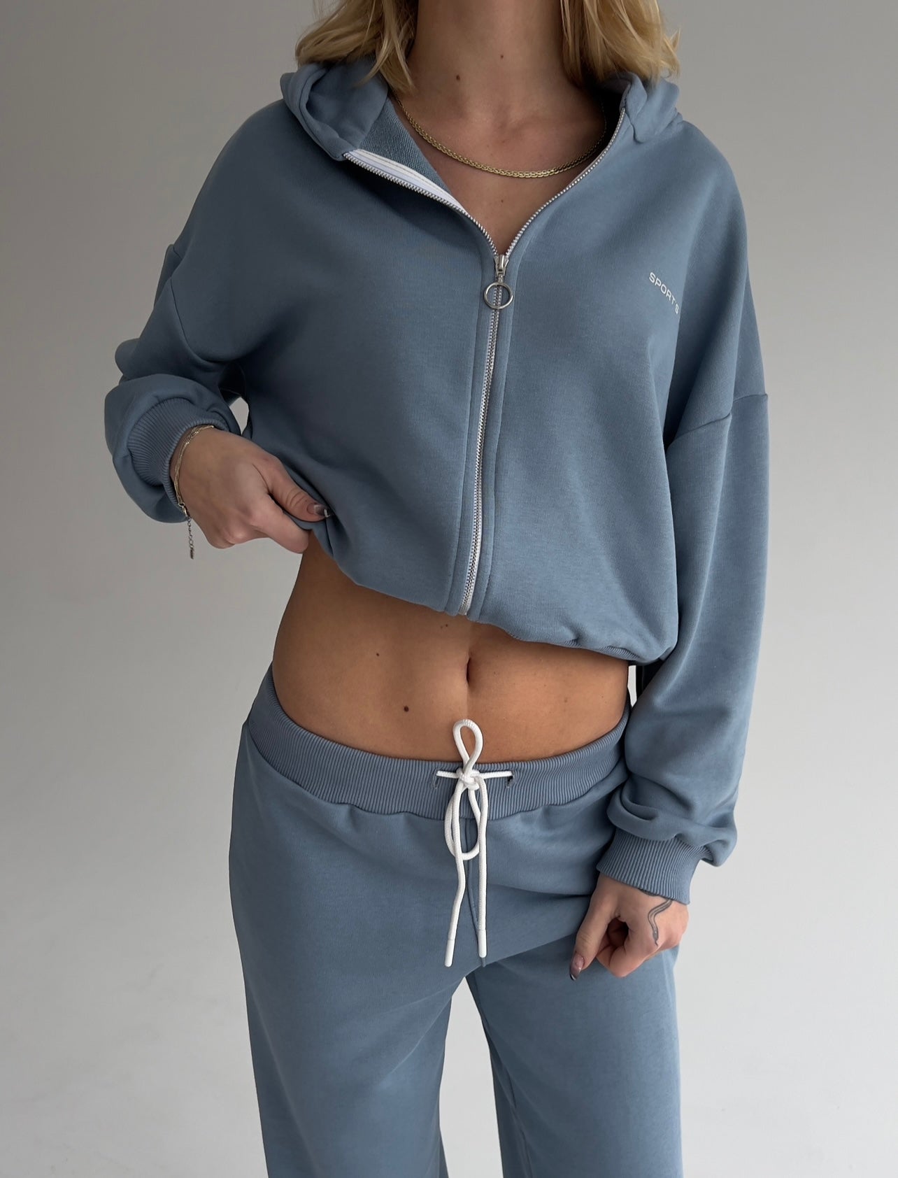 ოვერსაიზ ჟაკეტი ელვით და კაპიუშონით არის კომფორტული არჩევანი ყოველდღიური საქმიანობისთვის.