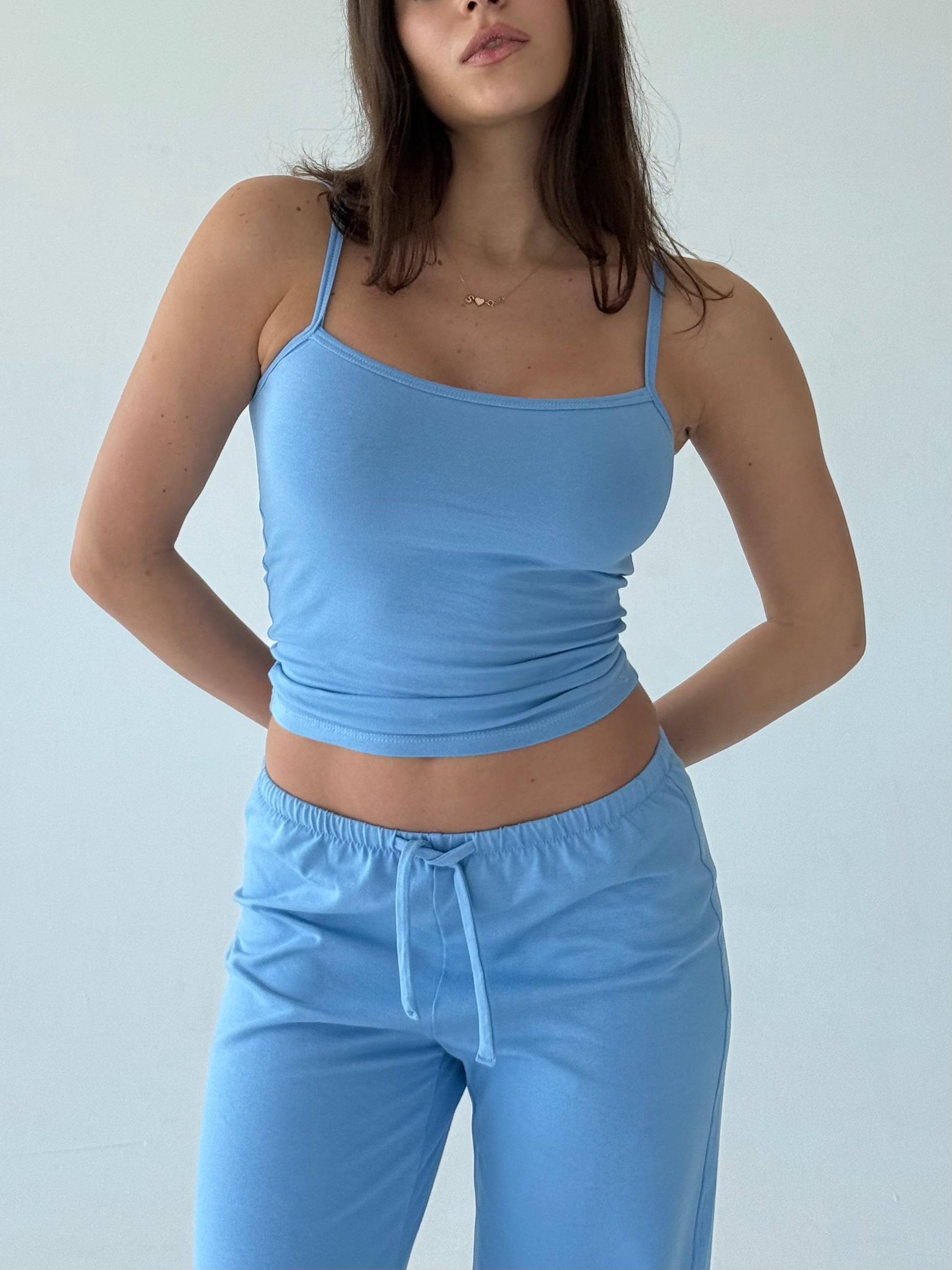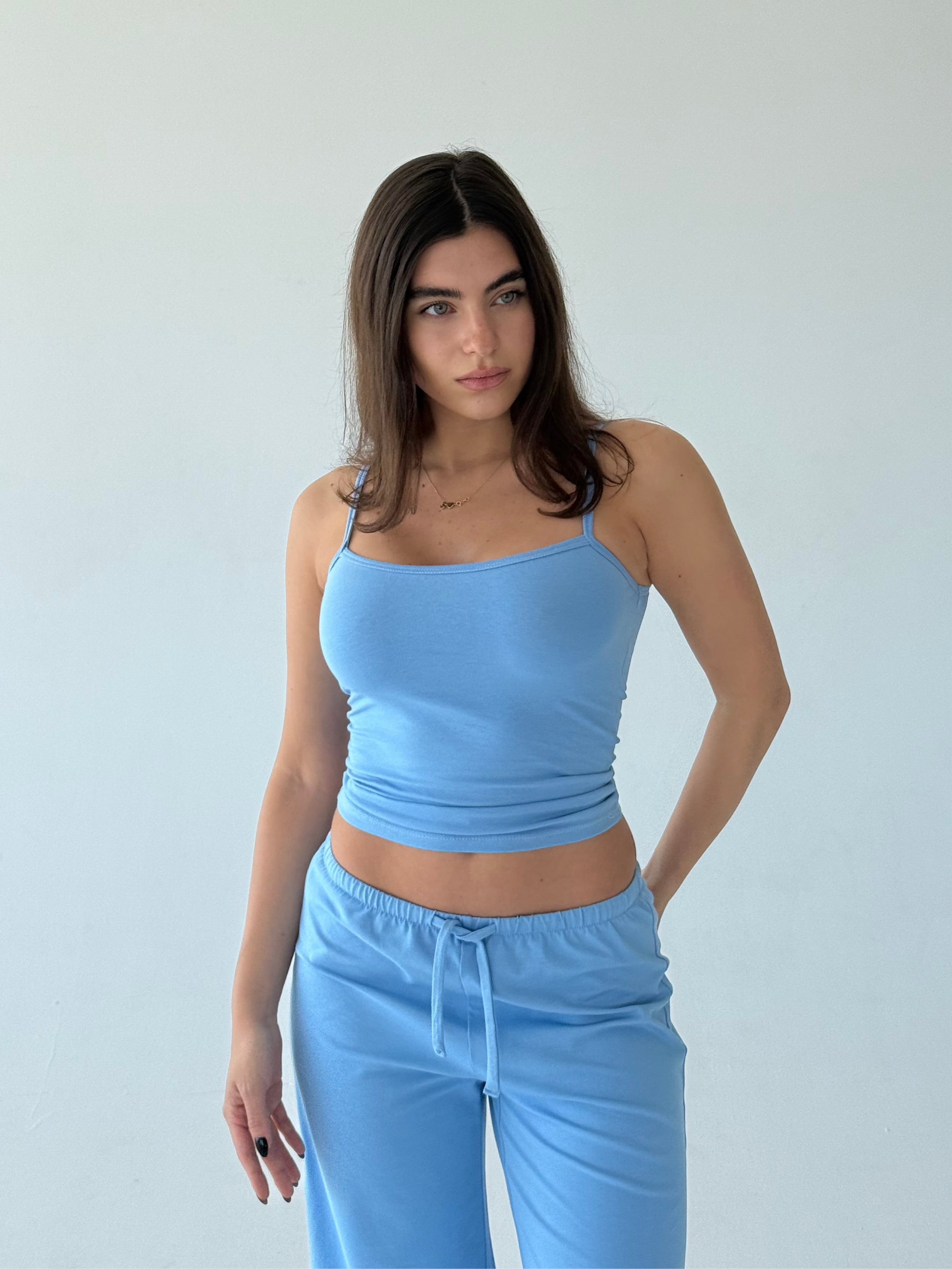 მაისური ბრეტელებზე იდეალურია ყოველდღიური აქტივობებისთვის. შეგიძლიათ მოირგოთ ჩვენს ლაუნჯ შარვალთან.