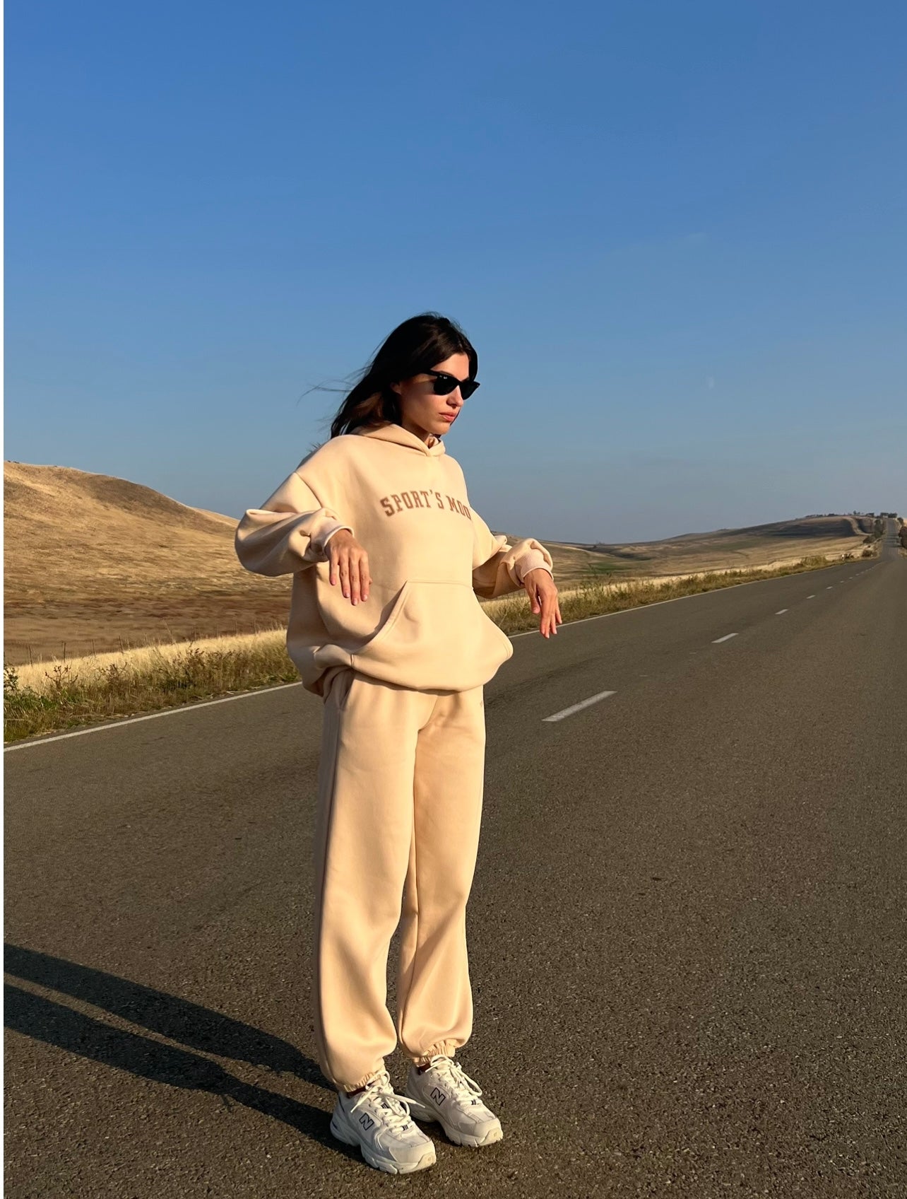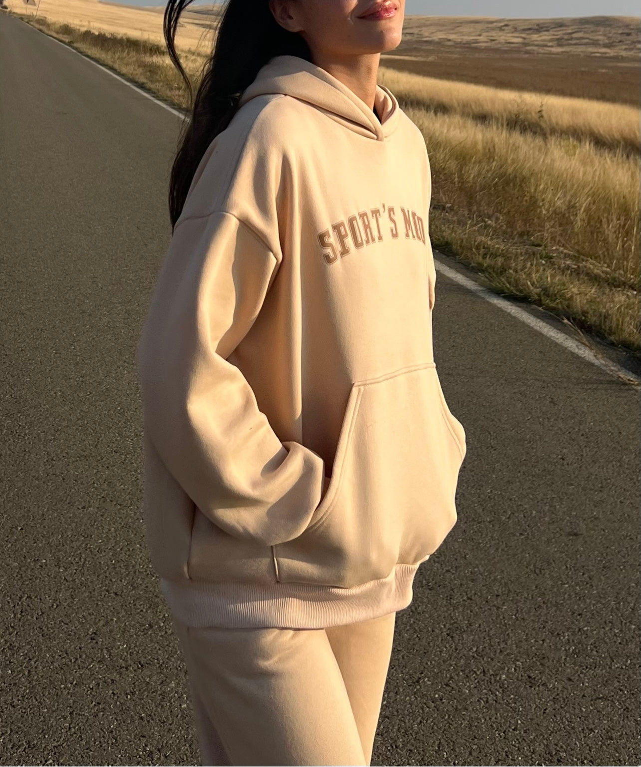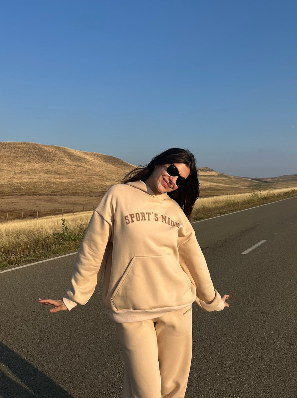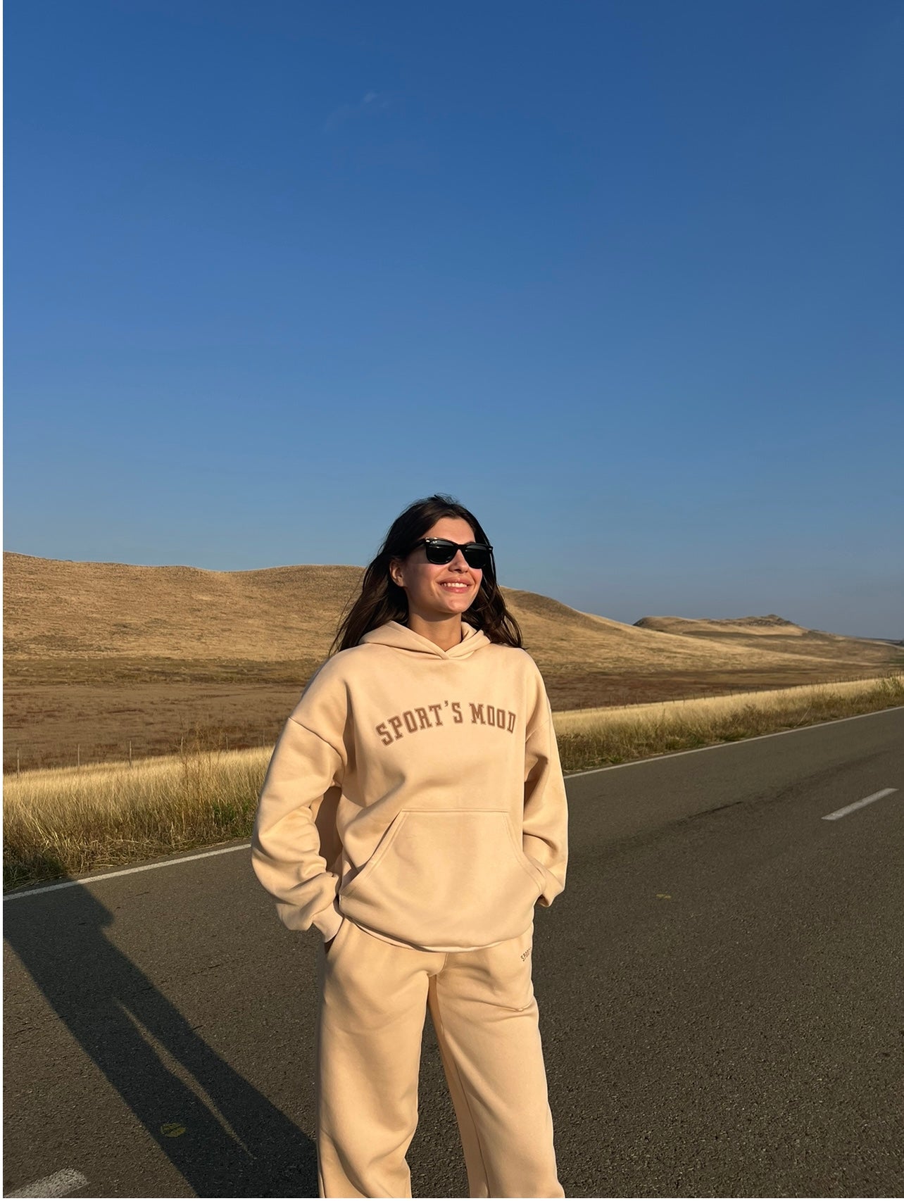 ახალი დათბილული ჰუდი ბეჟ ფერში შესანიშნავი არჩევანია ზამთრის ცივი დღეებისთვის.