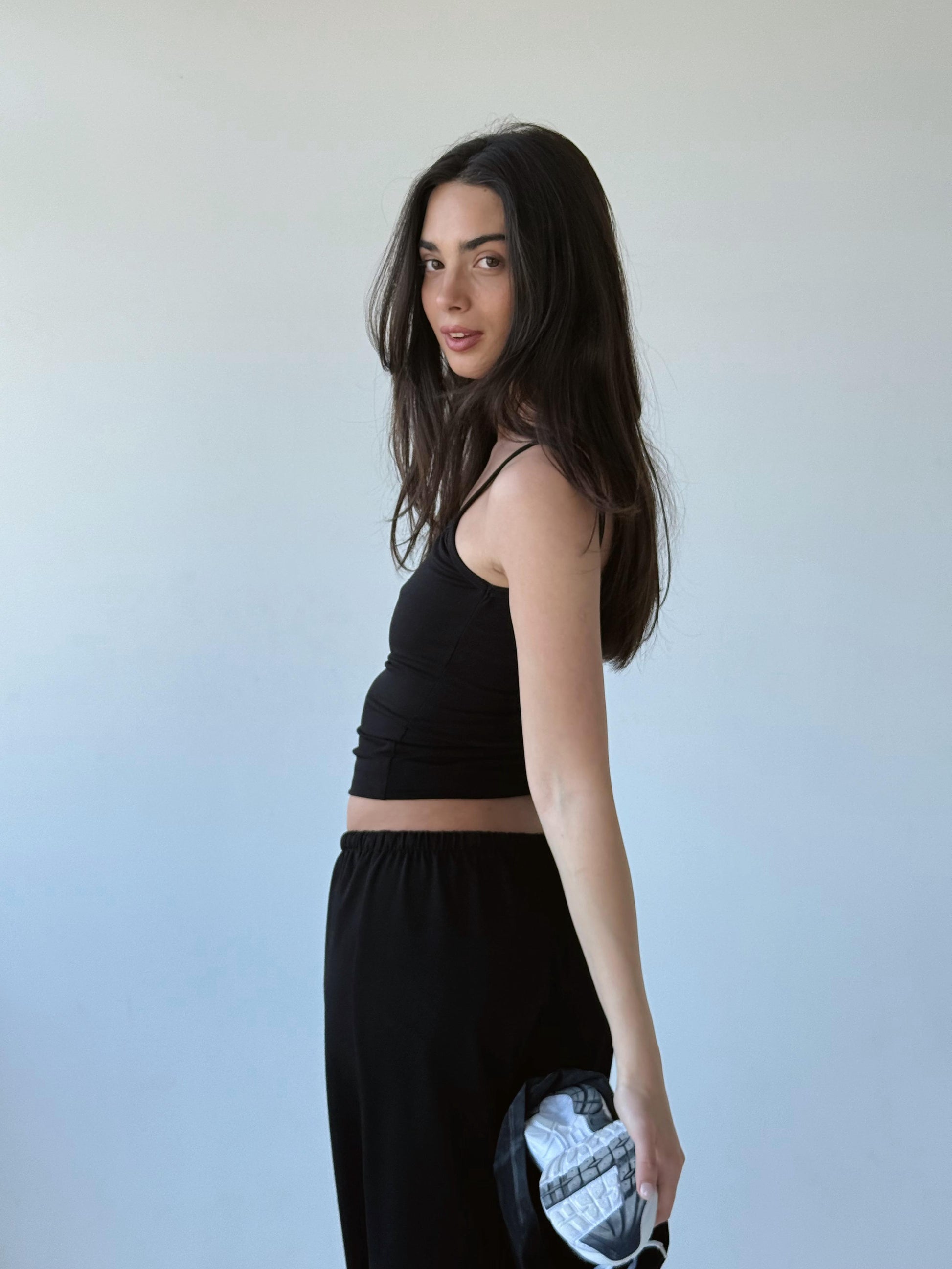 მაისური ბრეტელებზე იდეალურია ყოველდღიური აქტივობებისთვის. შეგიძლიათ მოირგოთ ჩვენს ლაუნჯ შარვალთან.