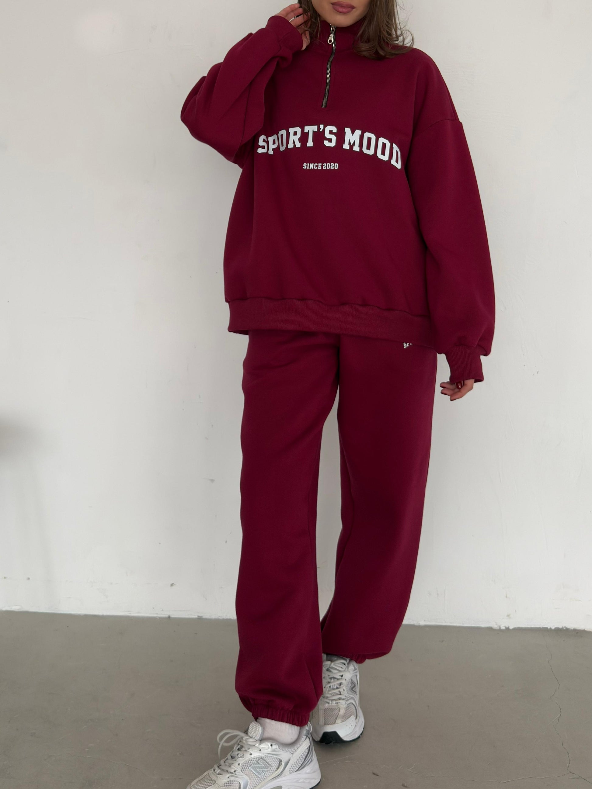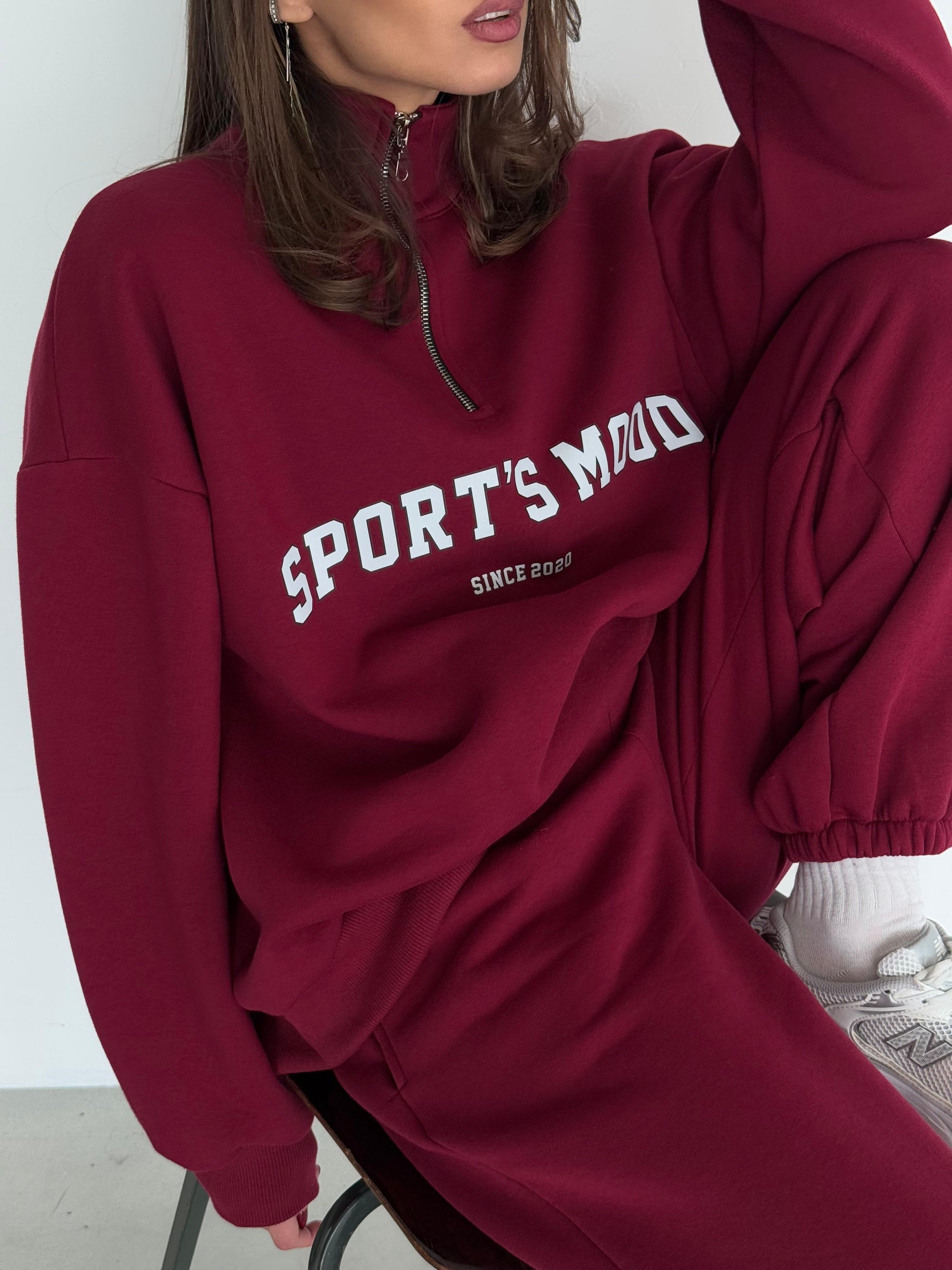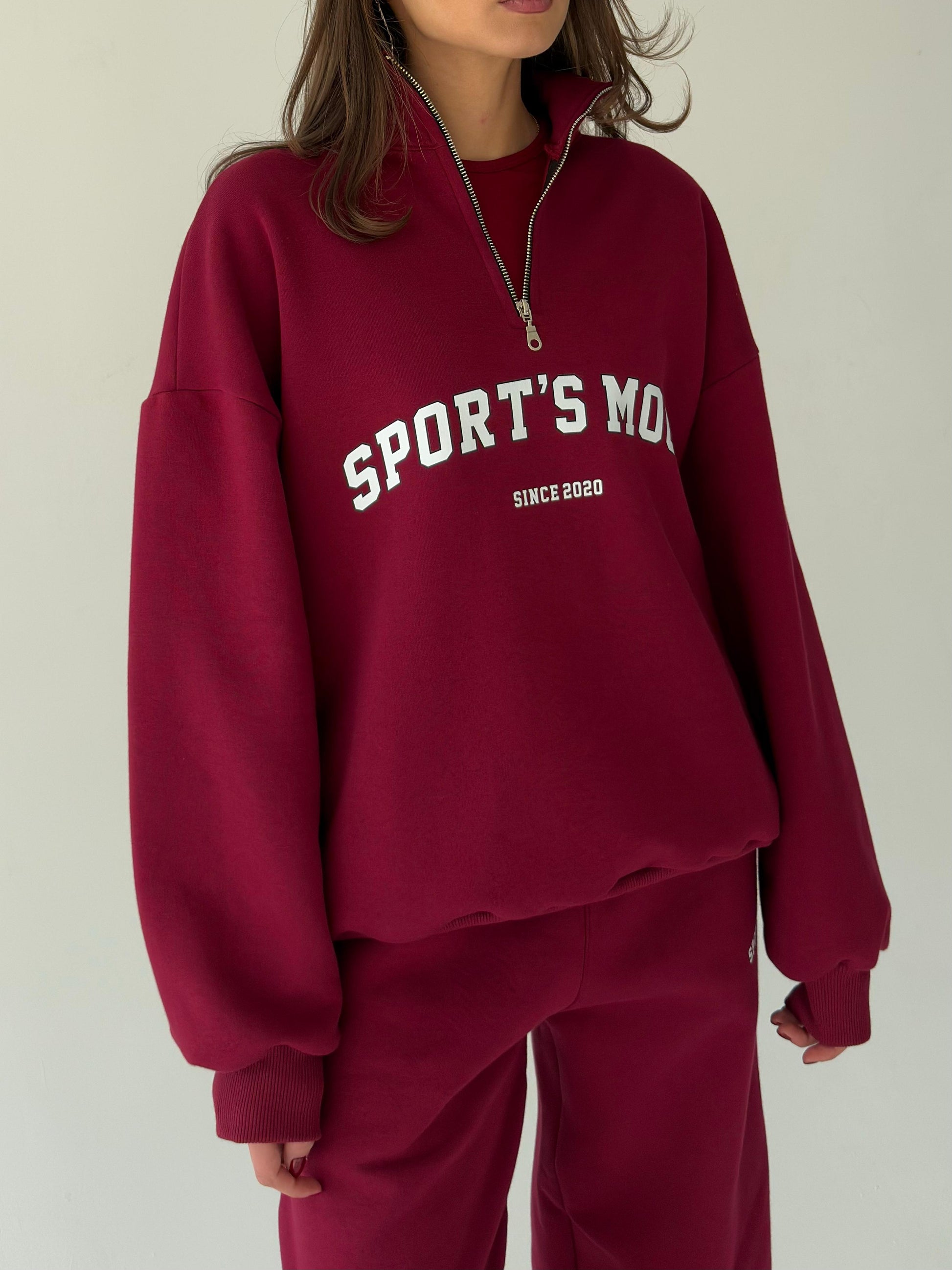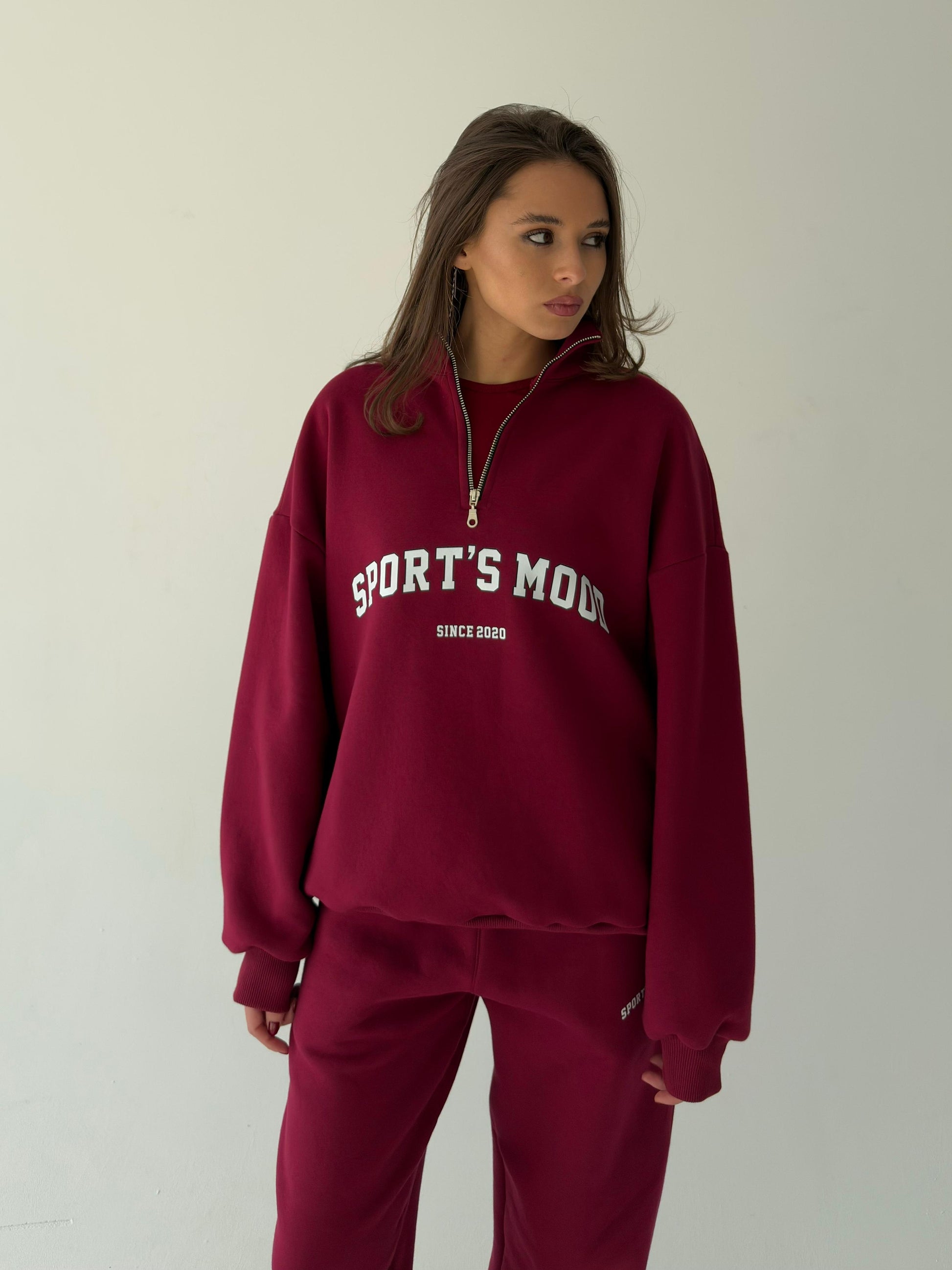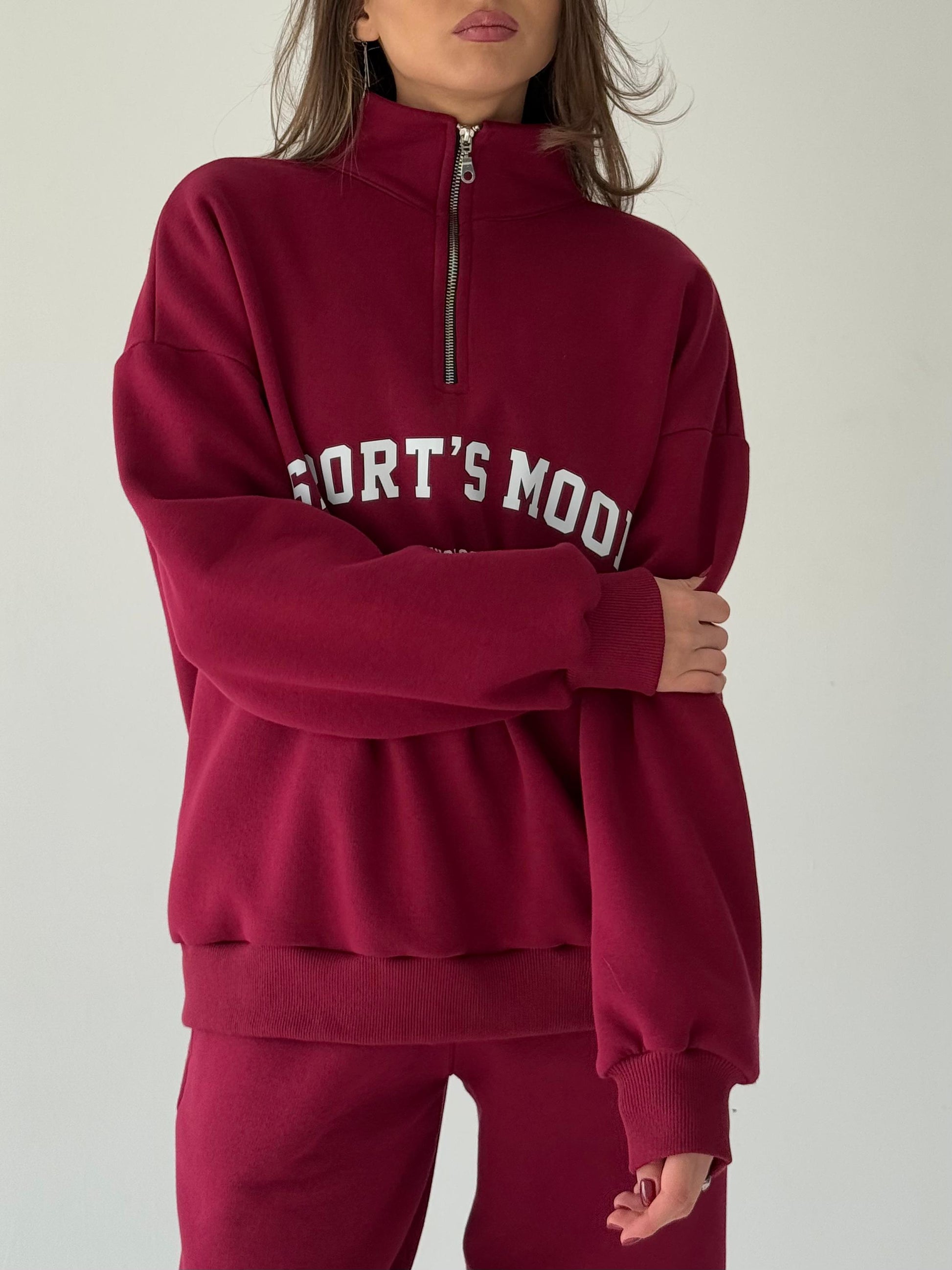 ბორდოსფერი დათბილული სვიტრი ელვით