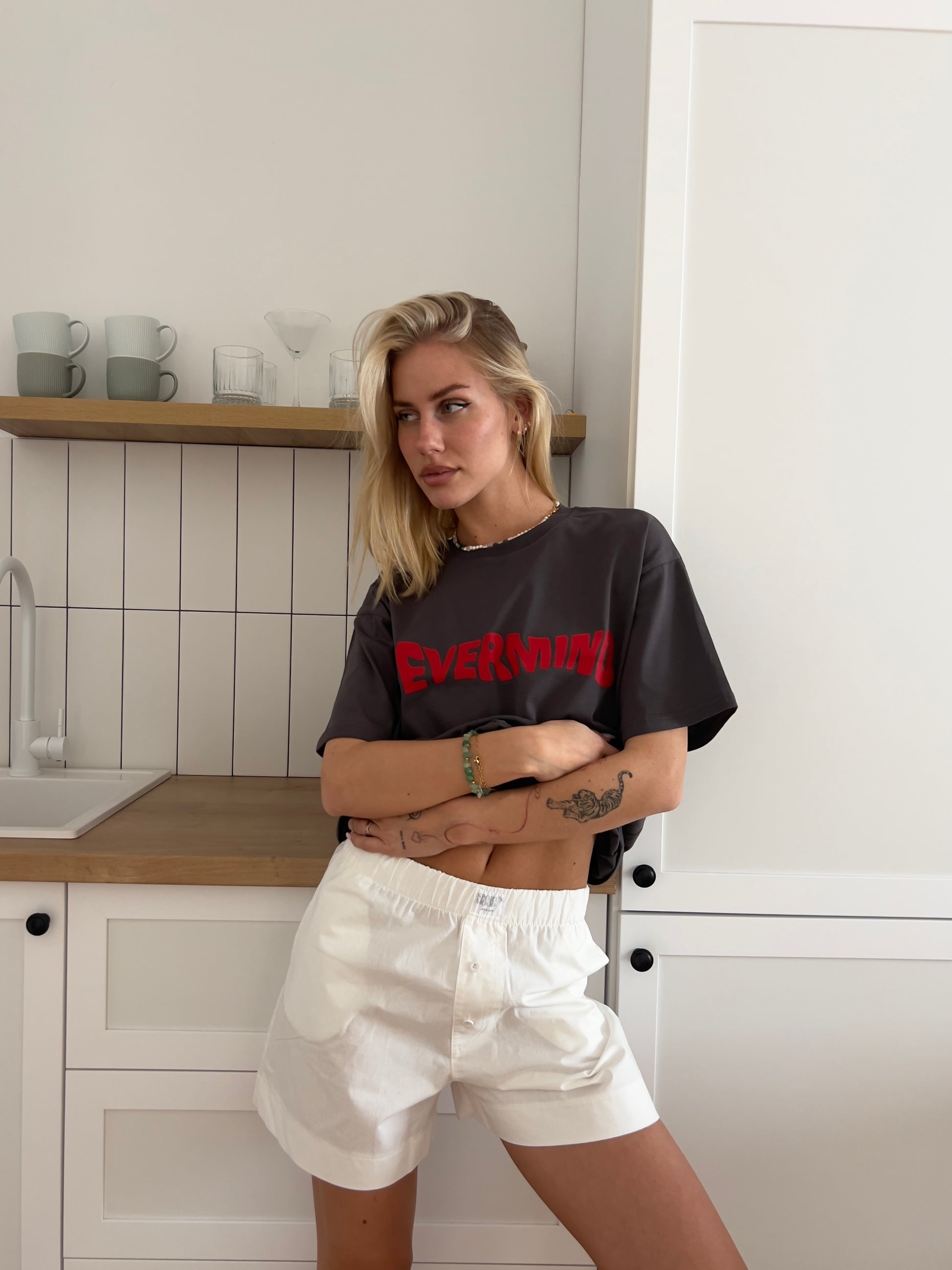 ოვერსაიზ მაისური ყოველთვის ტრენდულია. იგი დამზადებულია ორგანული ბამბისგან.