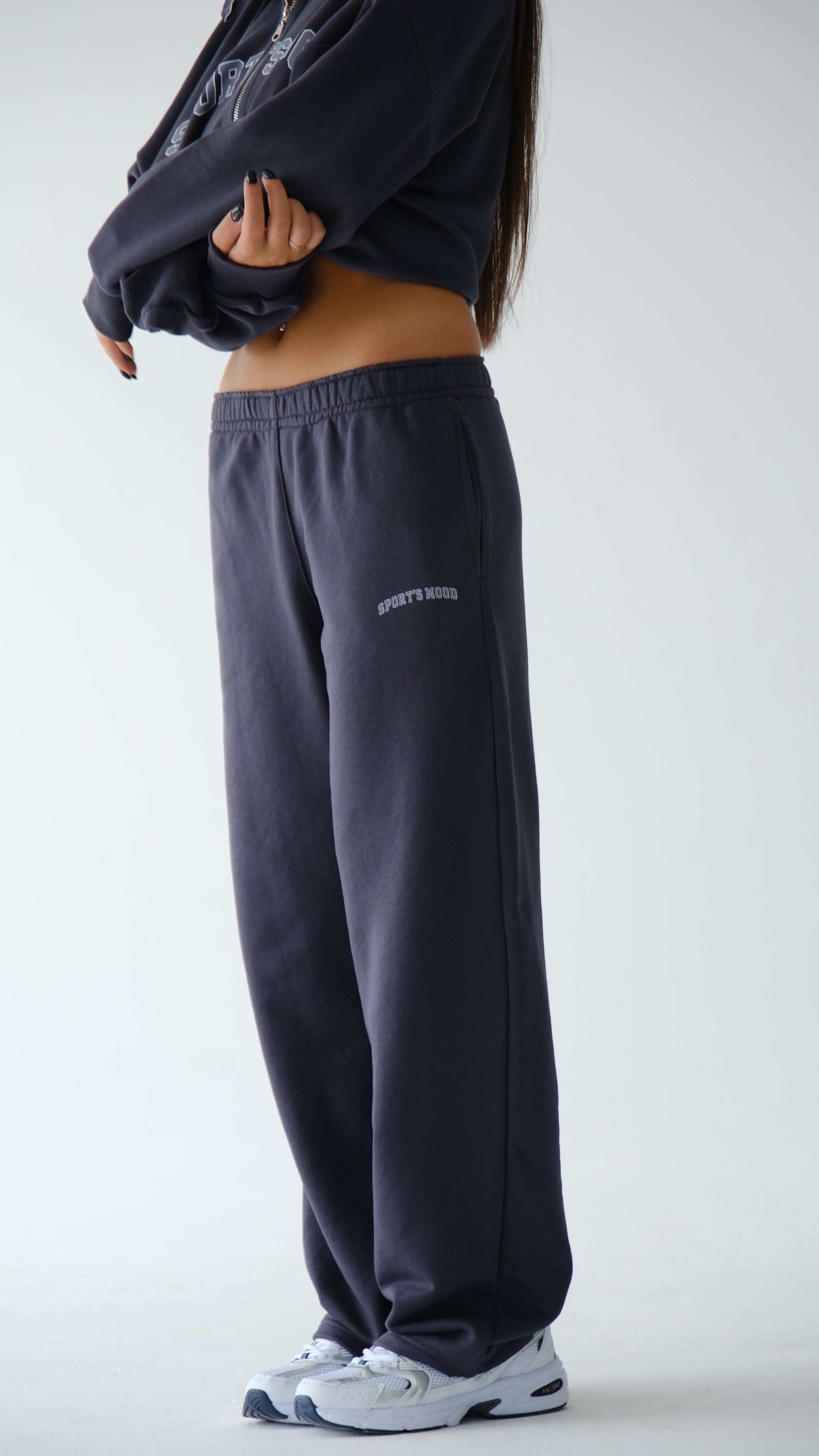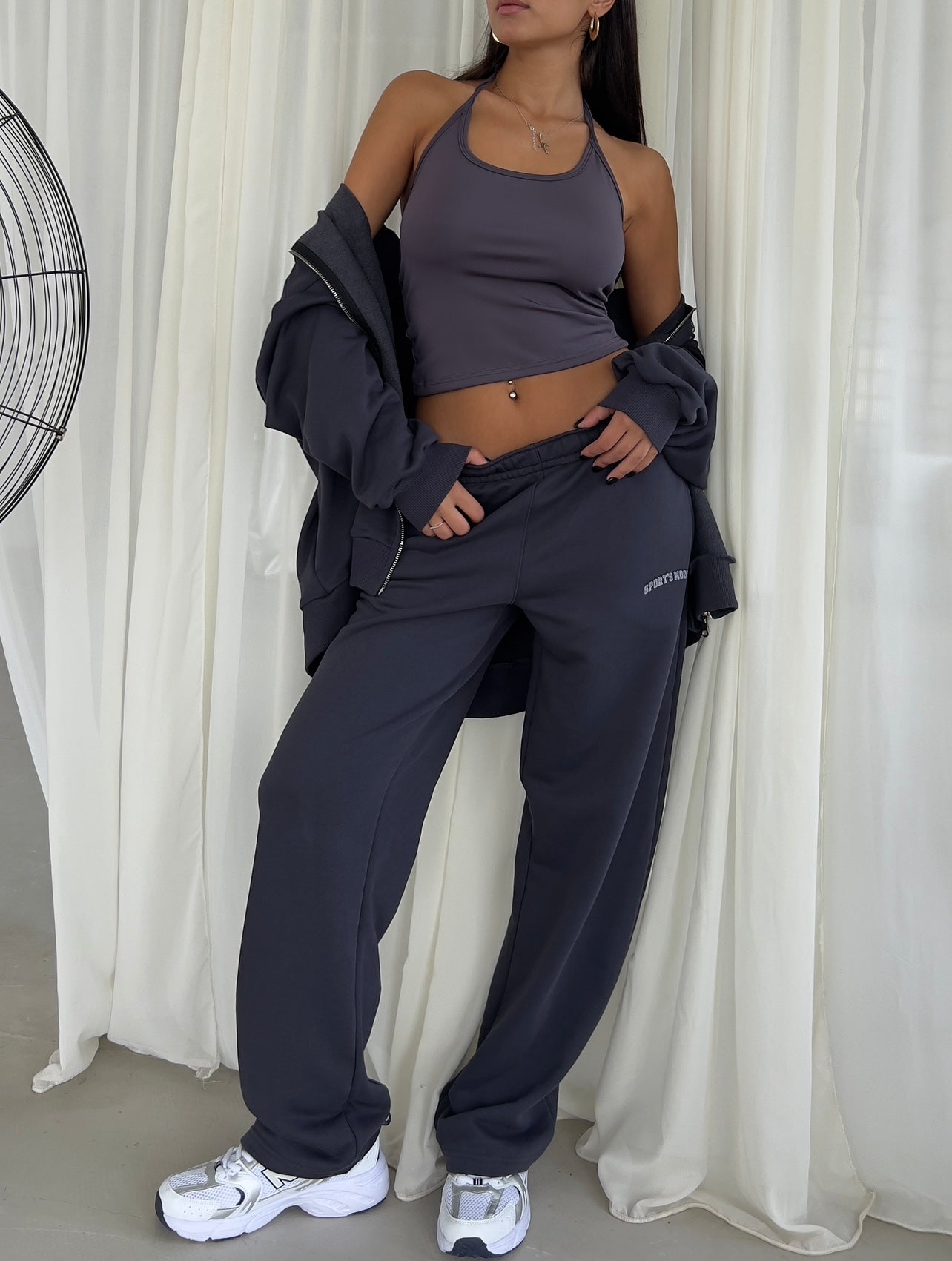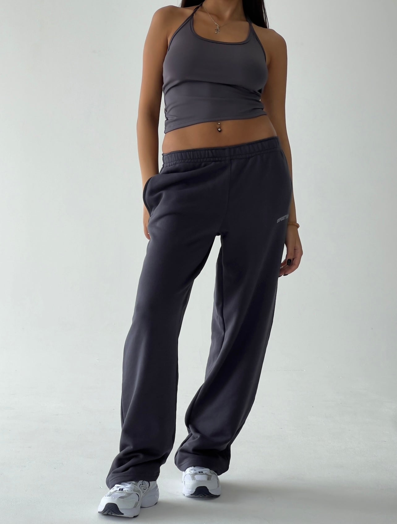 მუქი ნაცრისფერი სწორი სპორტული შარვალი