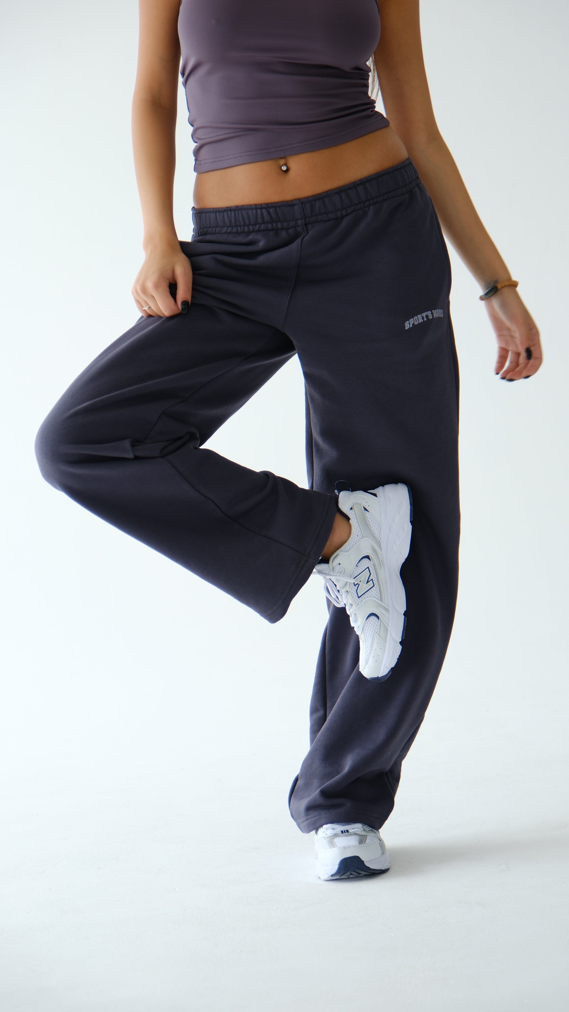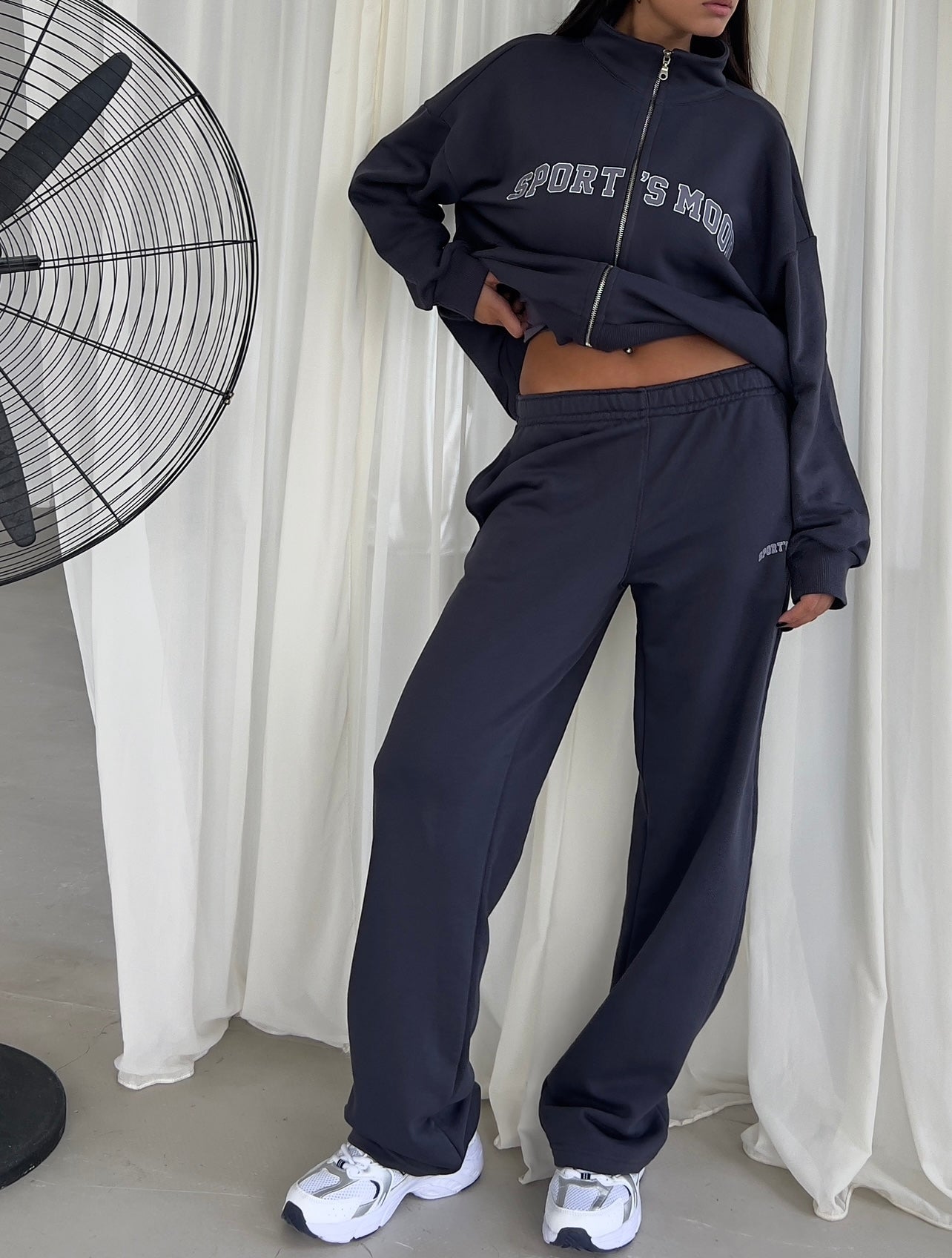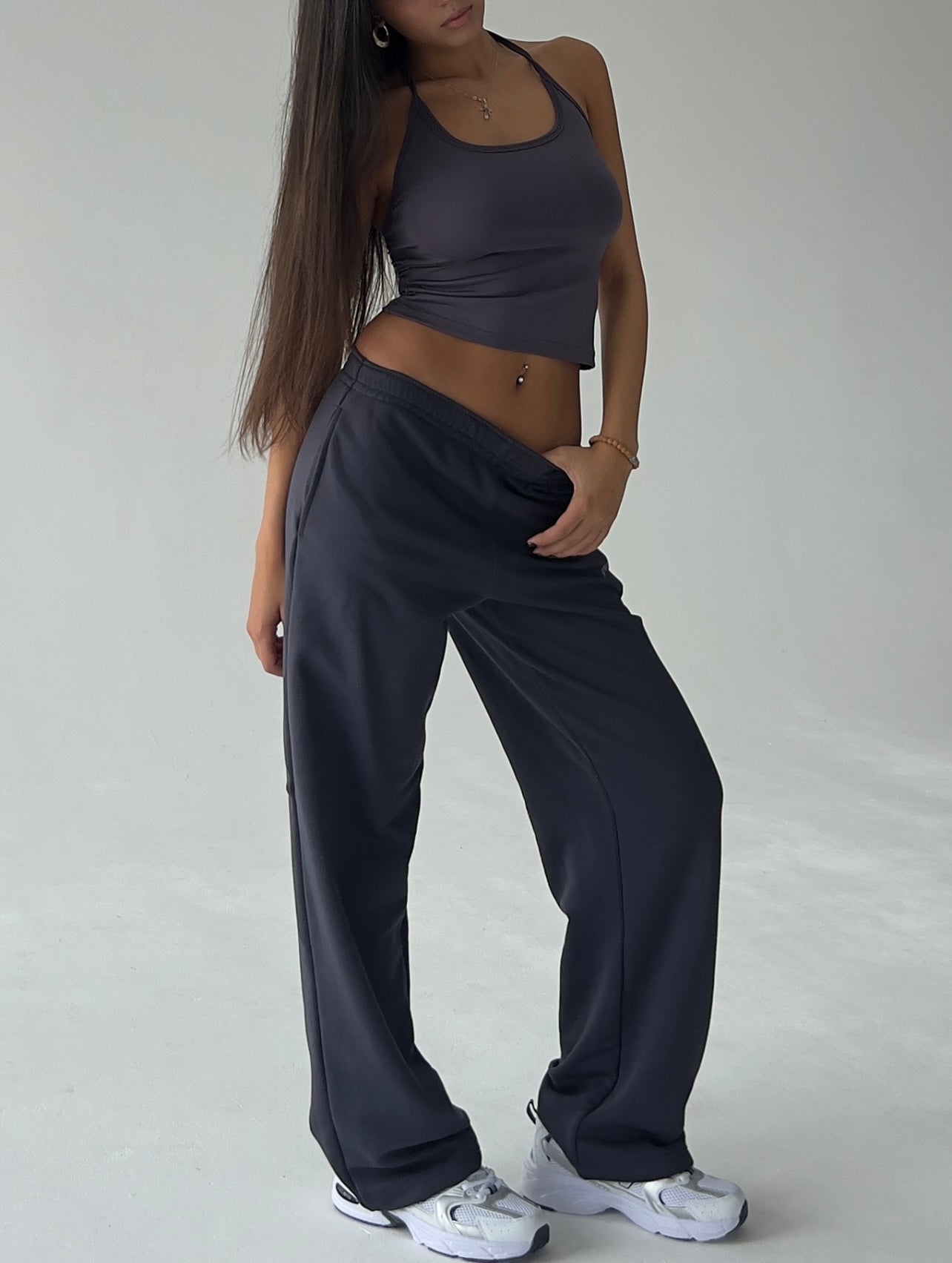 მუქი ნაცრისფერი სწორი სპორტული შარვალი