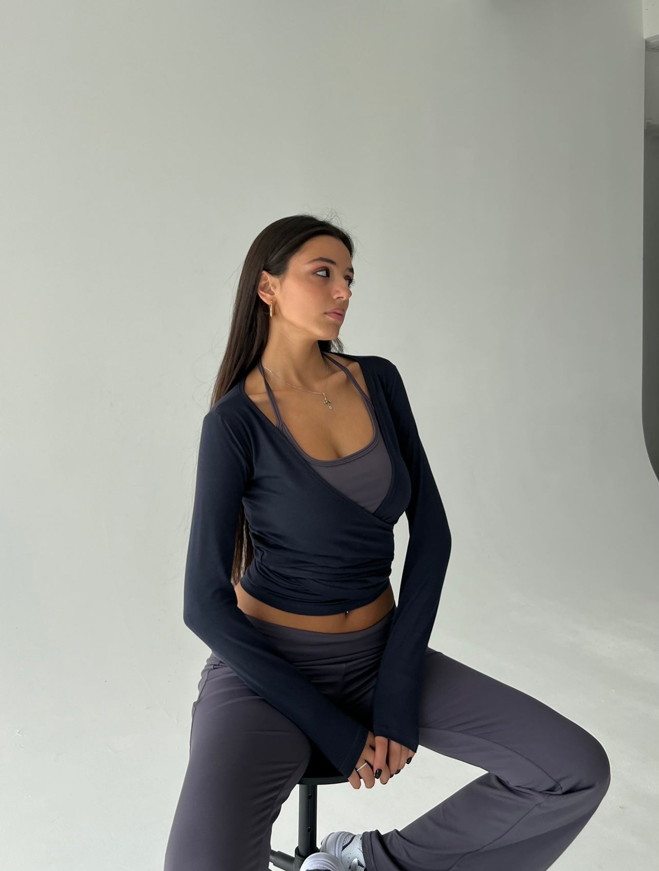 ჩვენი V ფორმის ჟაკეტი არის ელეგანტურობისა და კომფორტის შესანიშნავი ნაზავი ნებისმიერ შემთხვევისთვის. გრძელმკლავიანი ჟაკეტი დამზადებულია მსუბუქი და ელასტიური ბამბის ქსოვილისგან. რეგულირებადი თასმები საშუალებას გაძლეთ მარტივად მოირგოთ აღნიშნულიმოდელი.