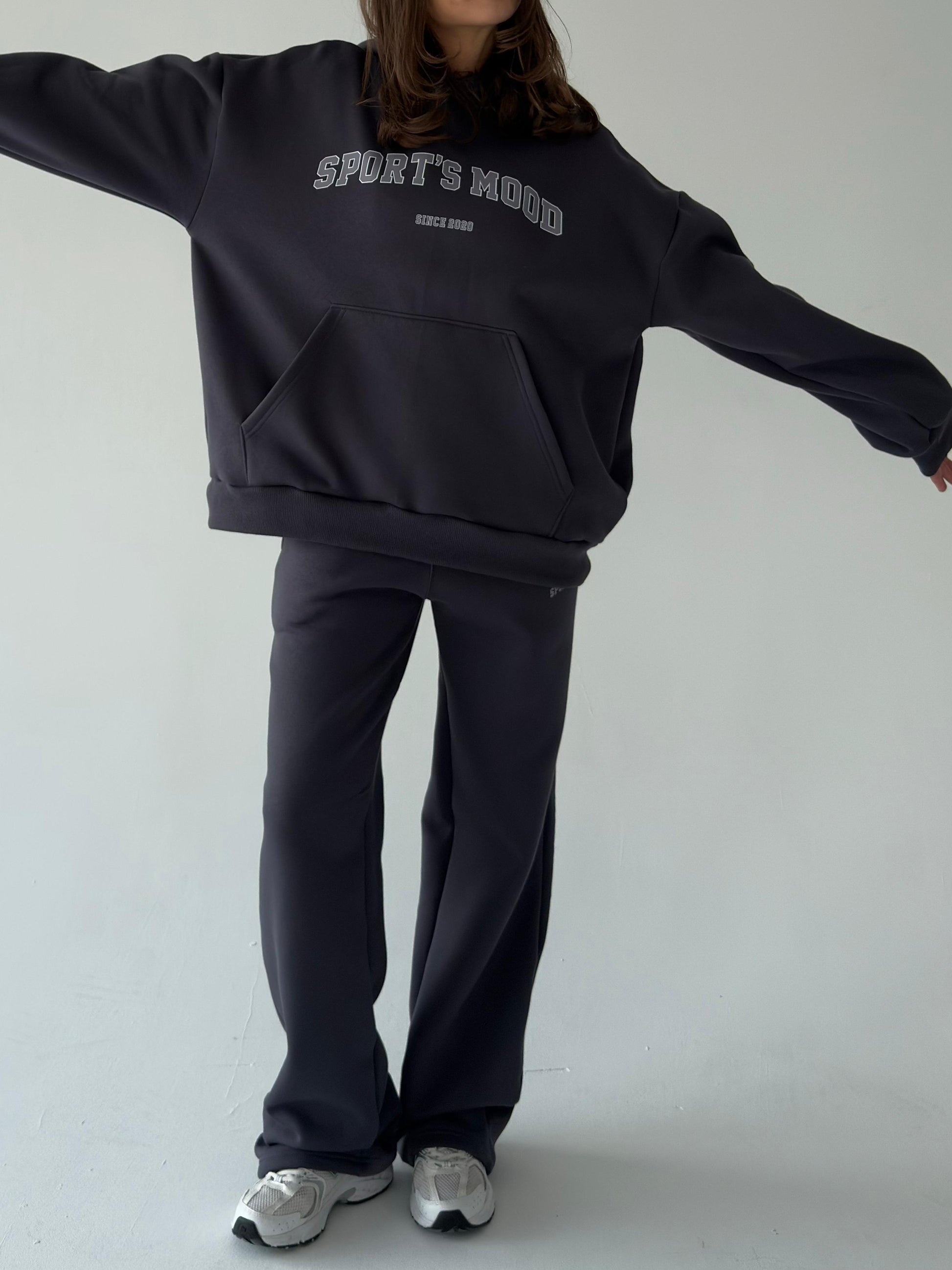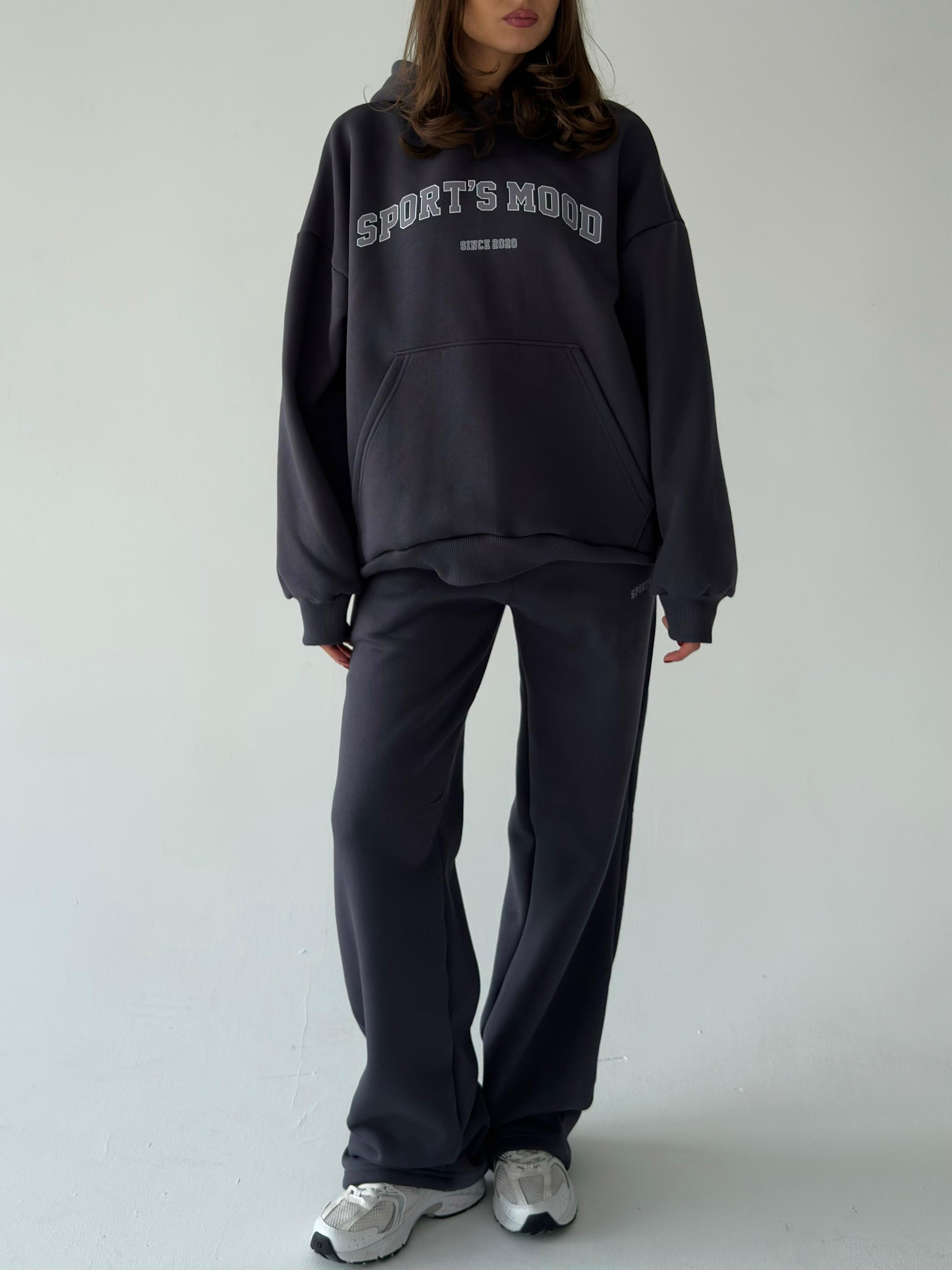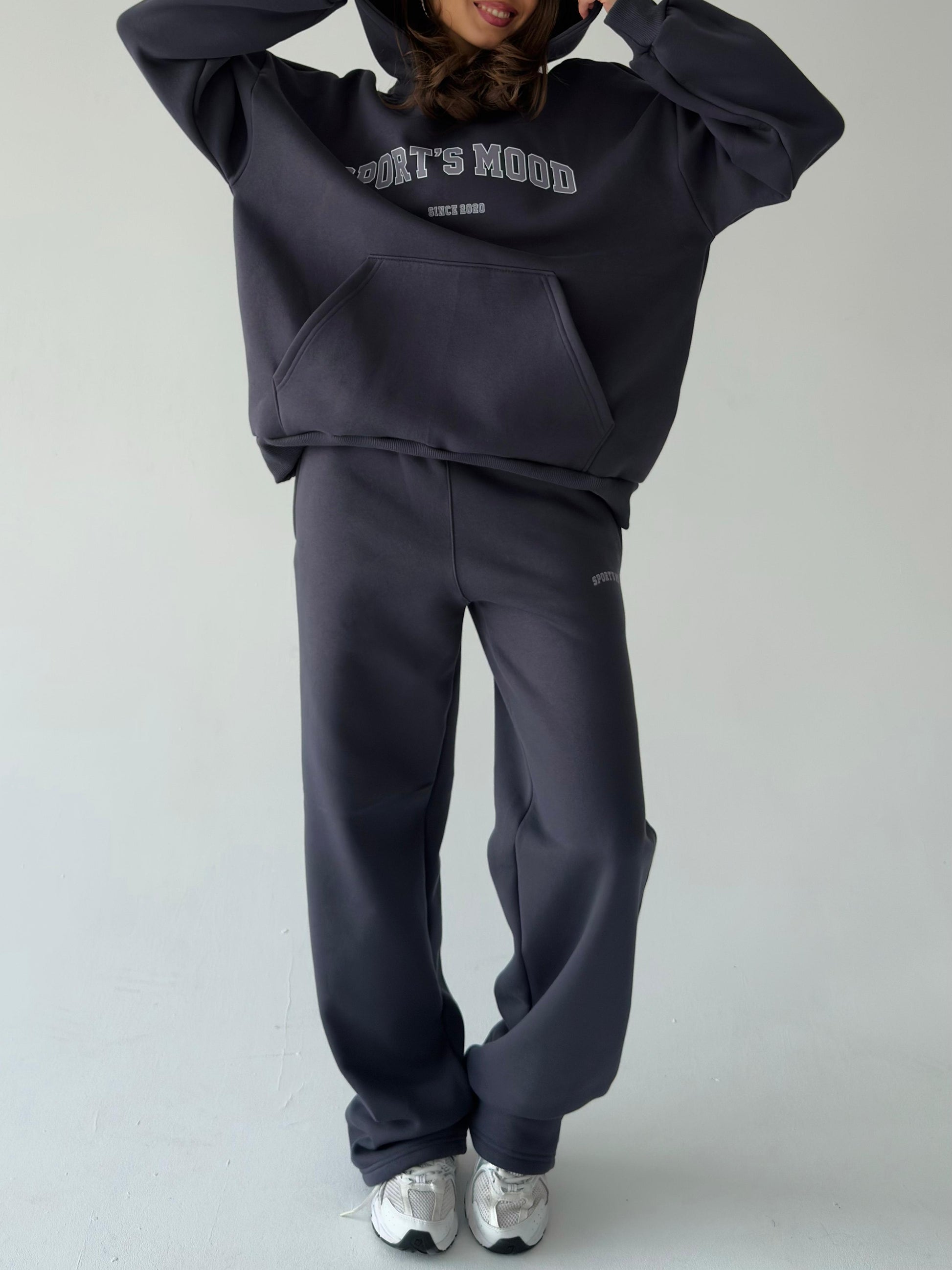 მუქი ნაცრისფერი დათბილული ჰუდი