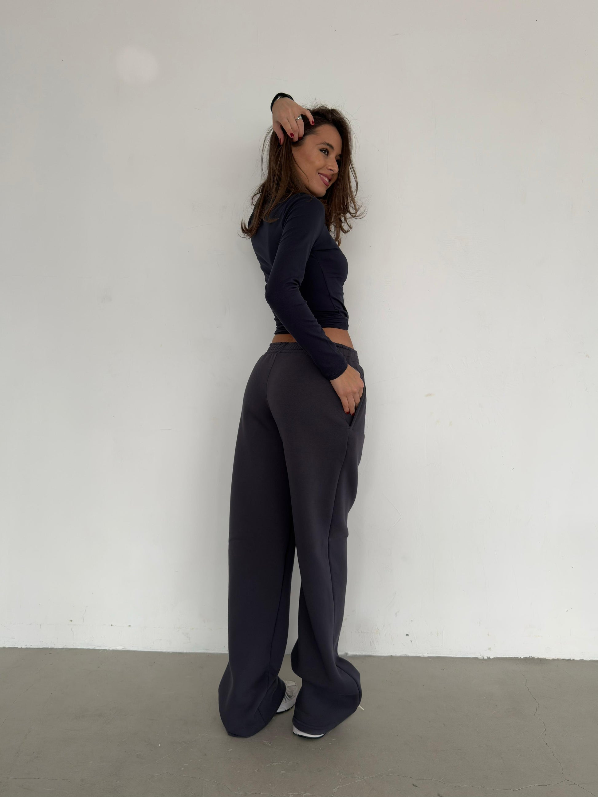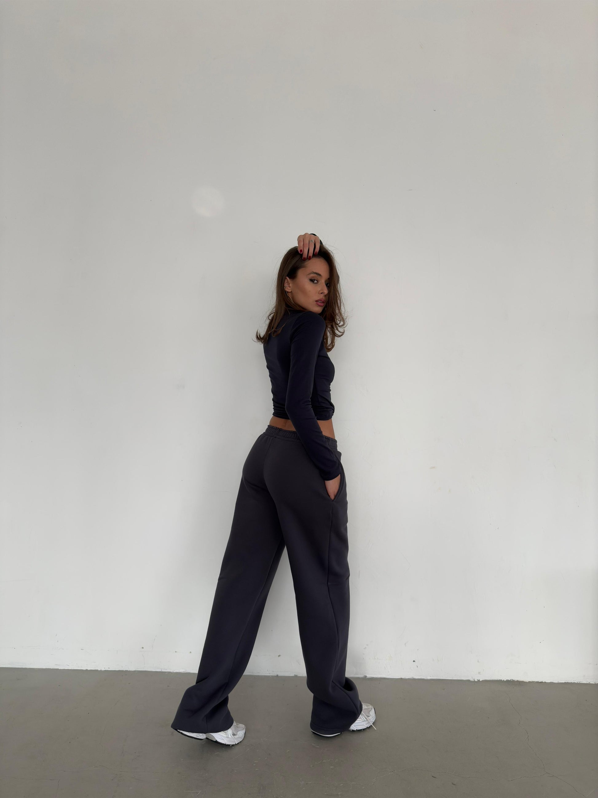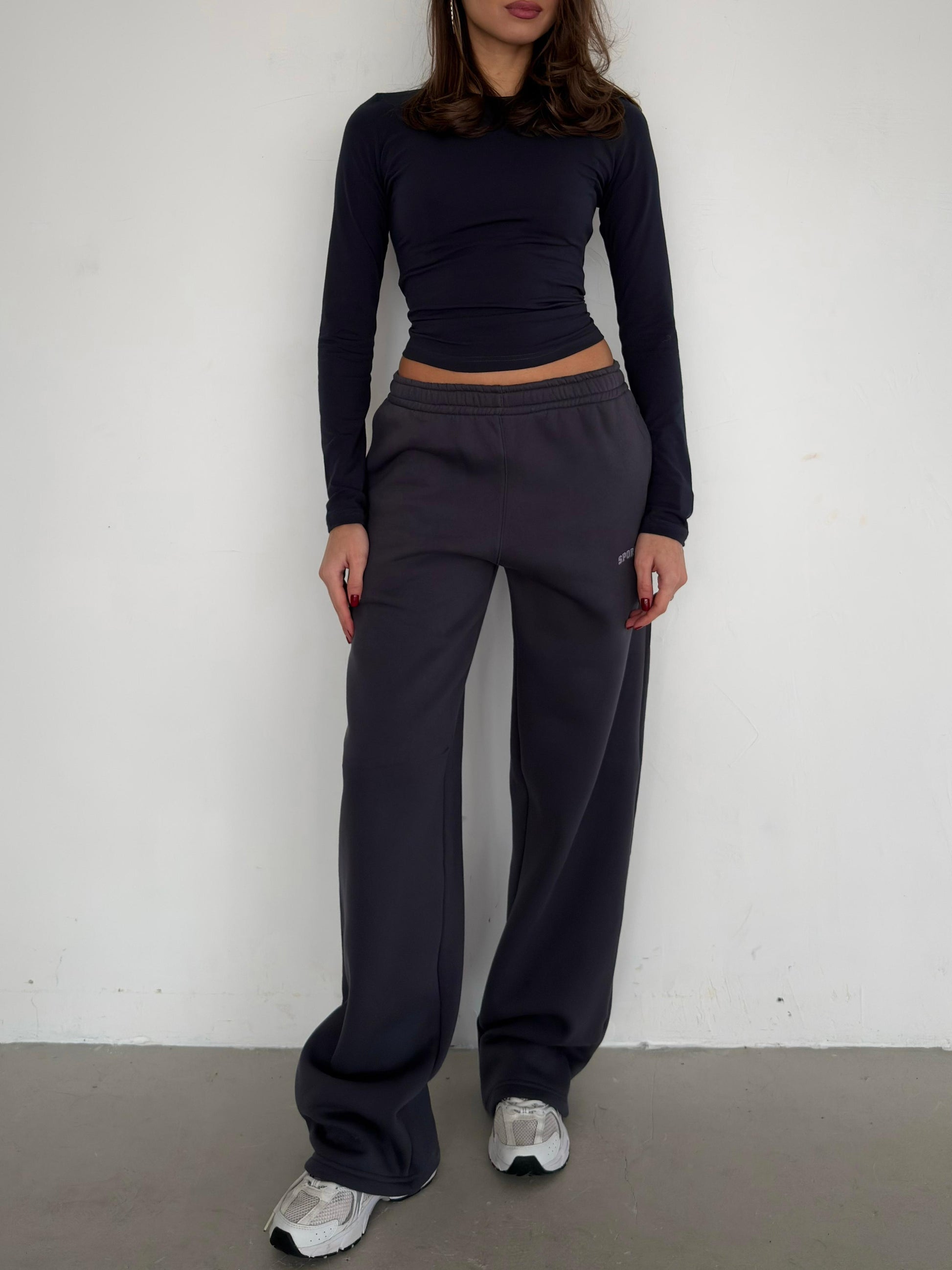 მუქი ნაცრისფერი დათბილული სწორი სპორტული შარვალი