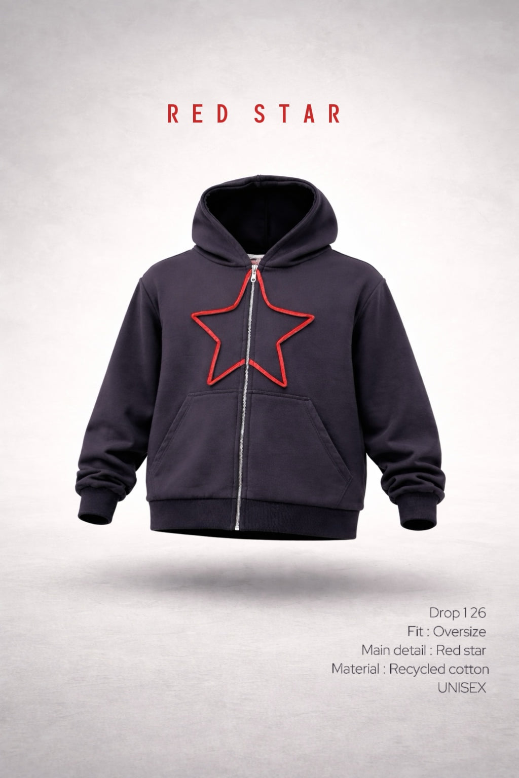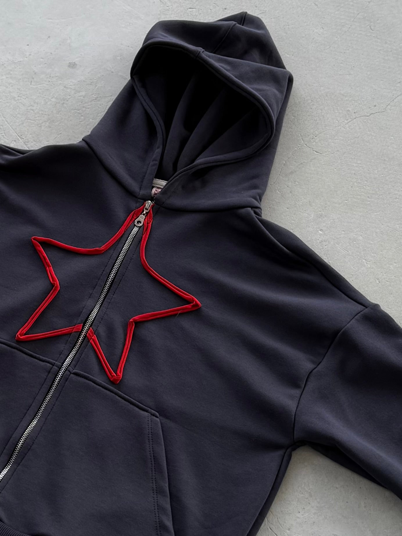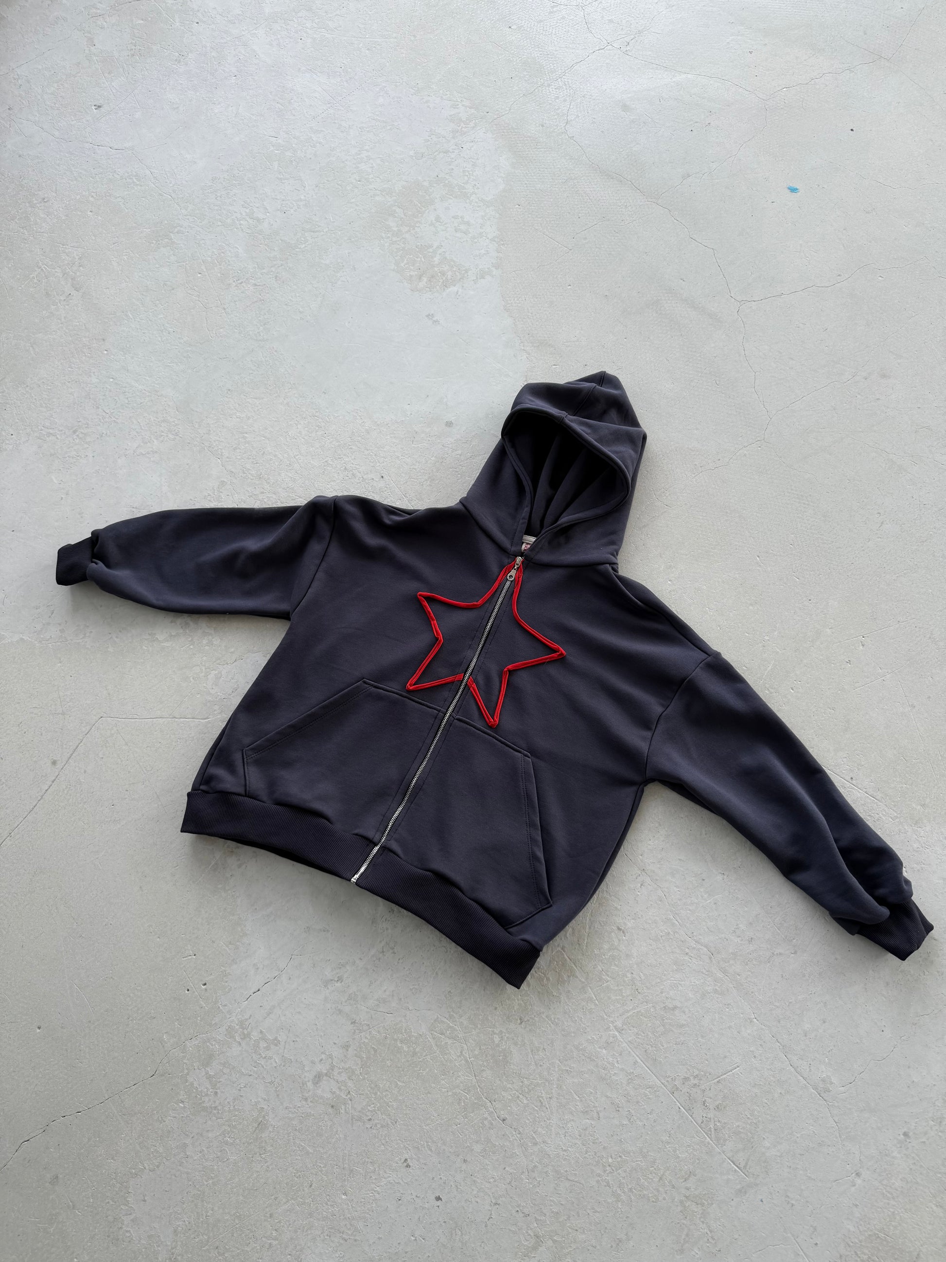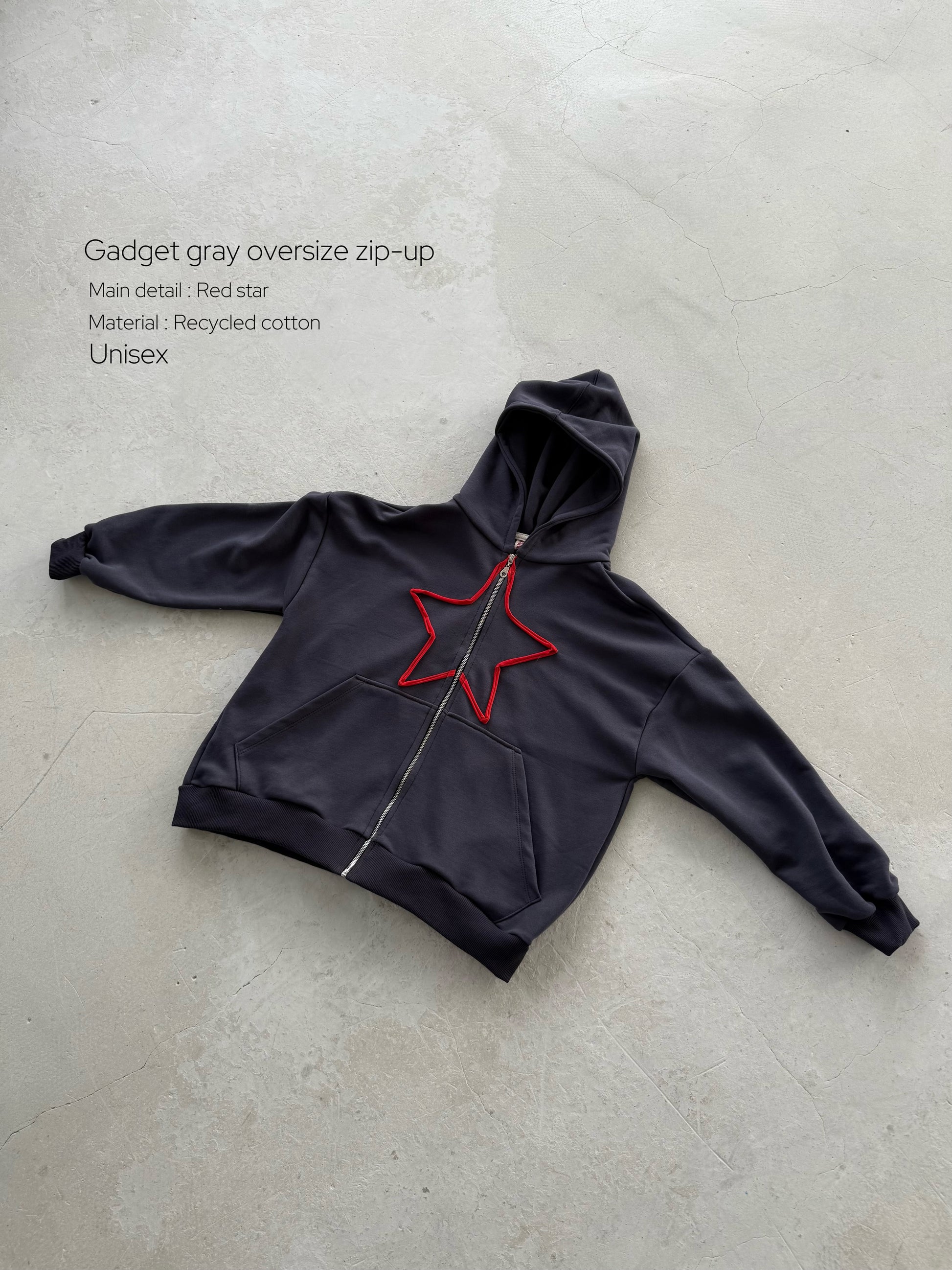 მუქი ნაცრისფერი ოვერსაიზ ჟაკეტი - წითელი ვარსკვლავი