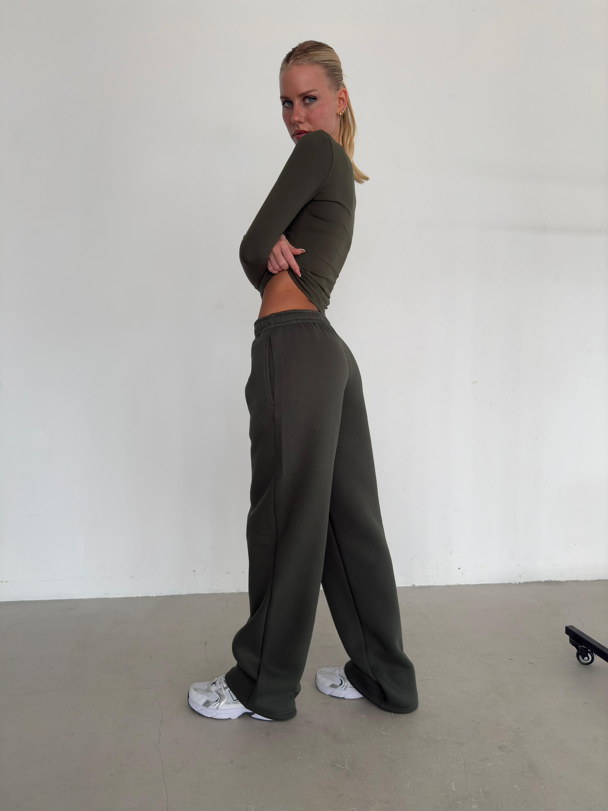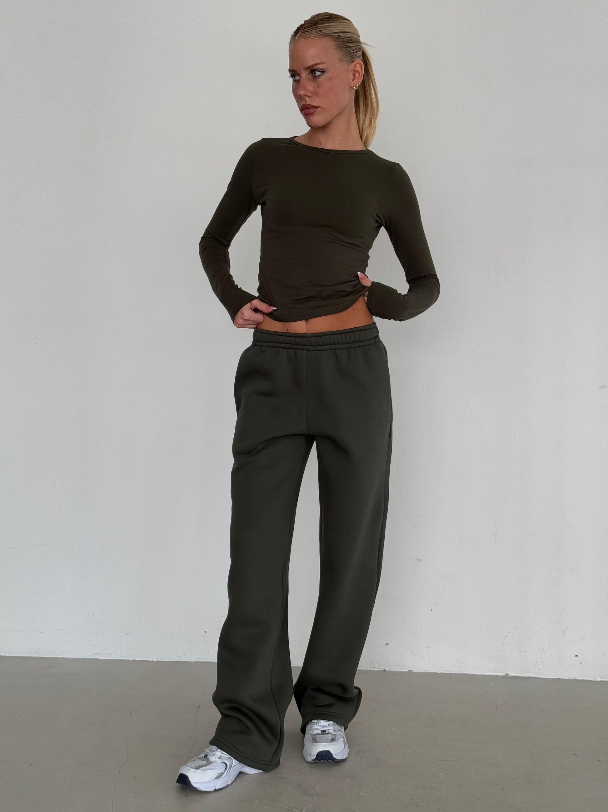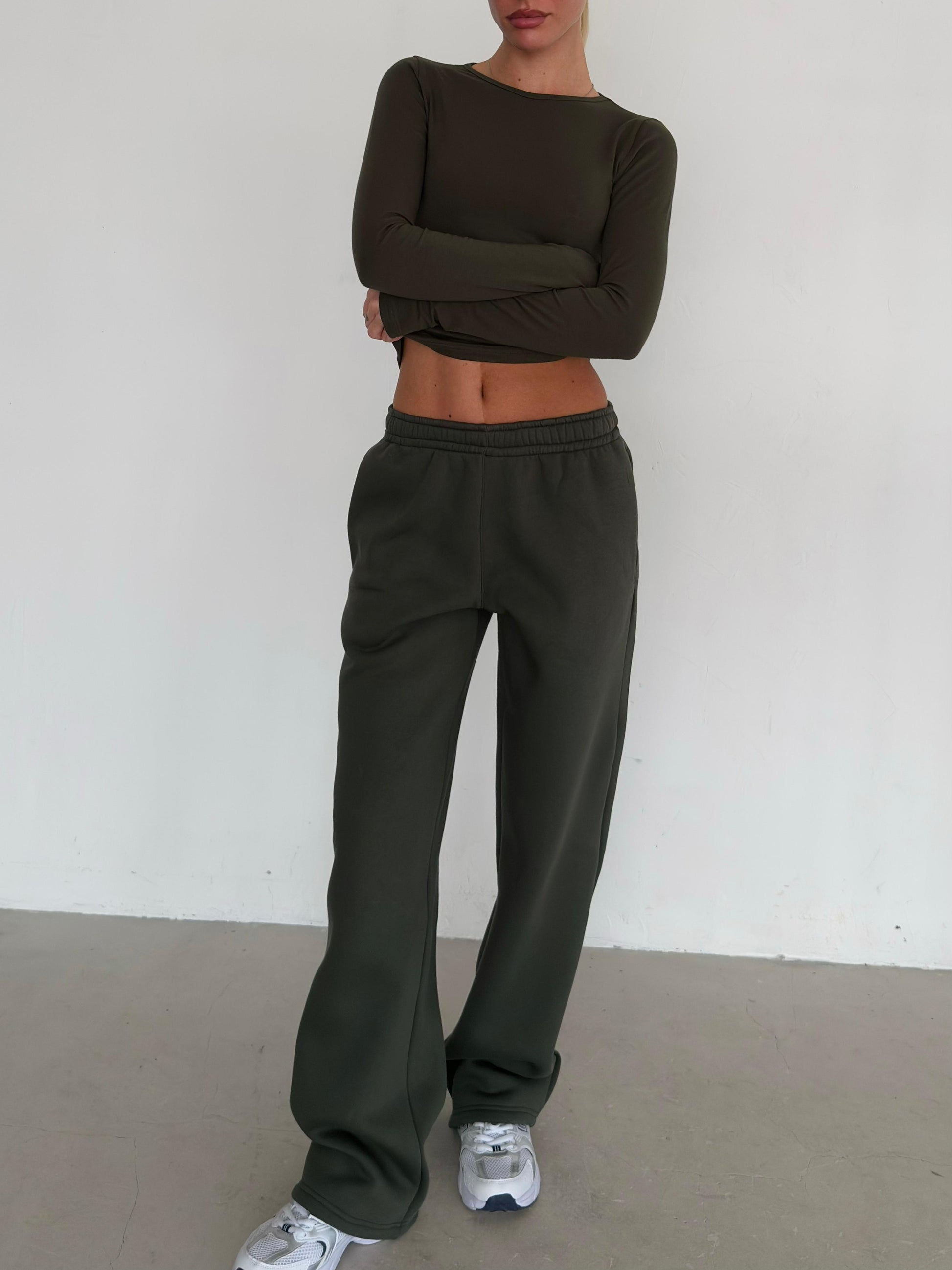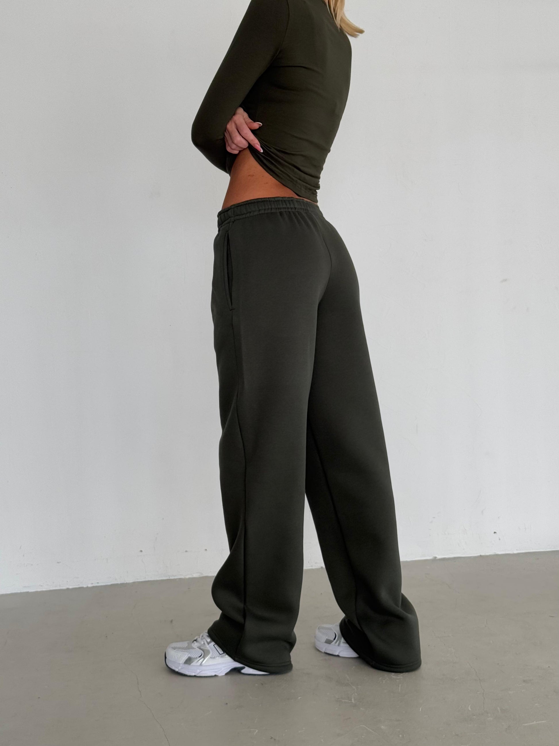 ხაკისფერი დათბილული სწორი სპორტული შარვალი