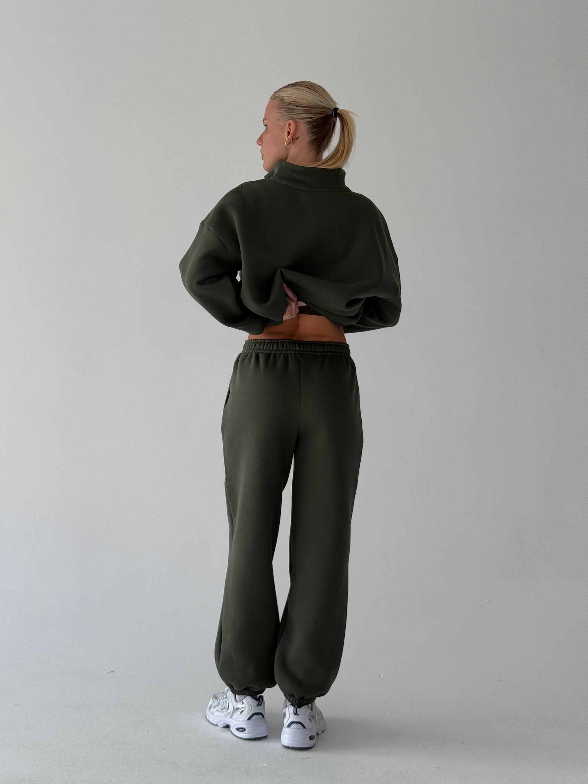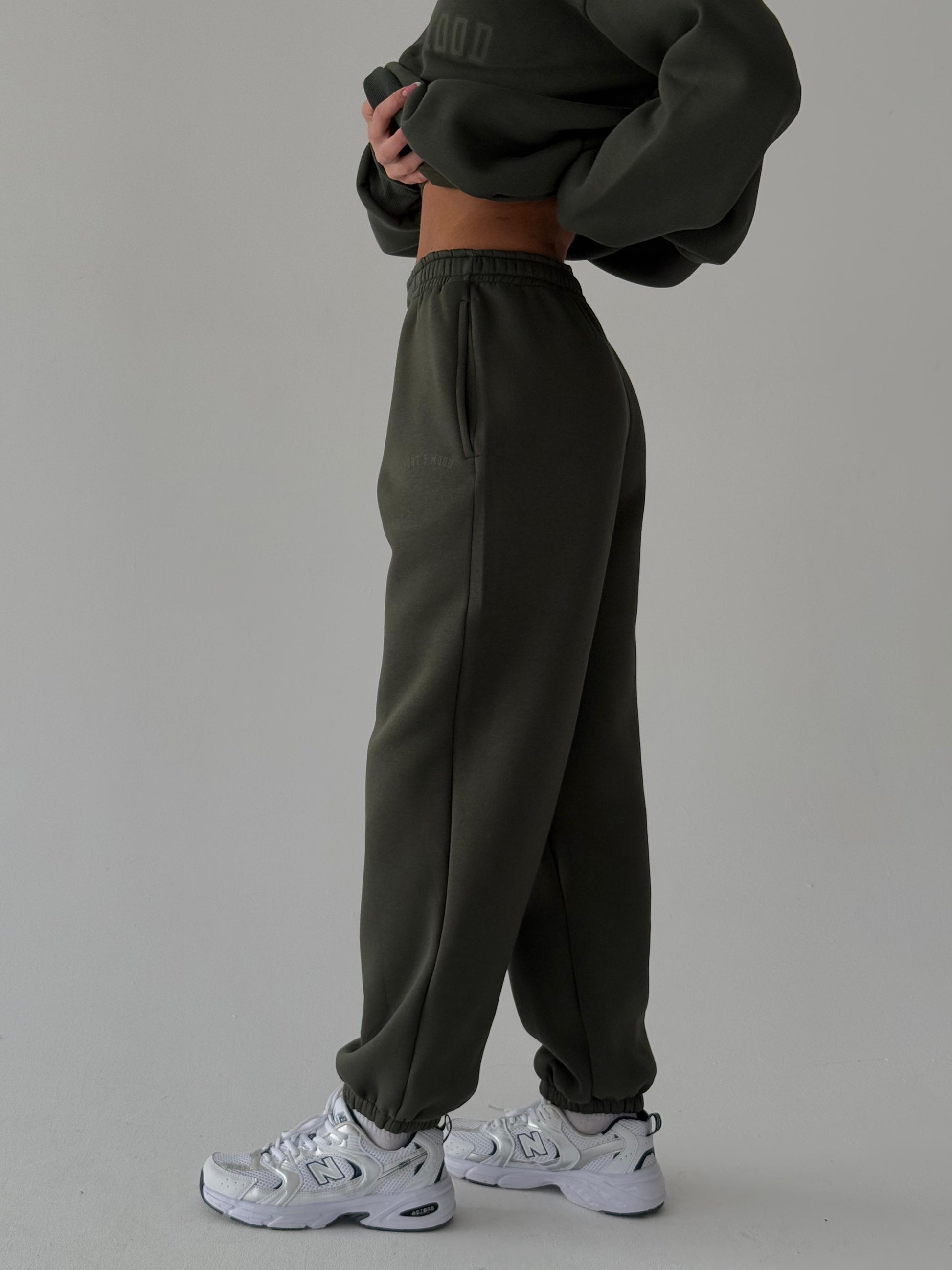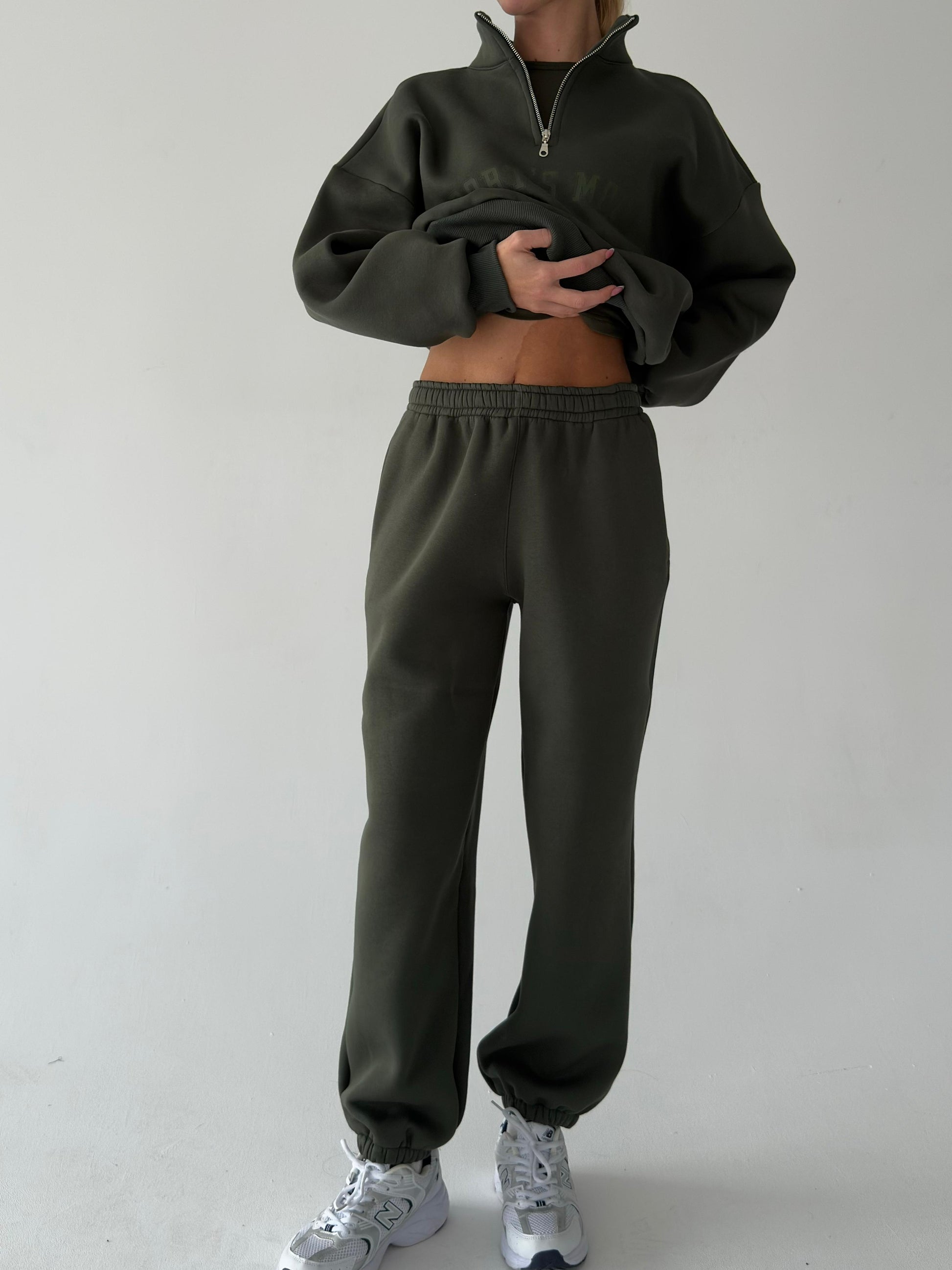 ხაკისფერი დათბილული სპორტული შარვალი რეზინის დაბოლოვებით