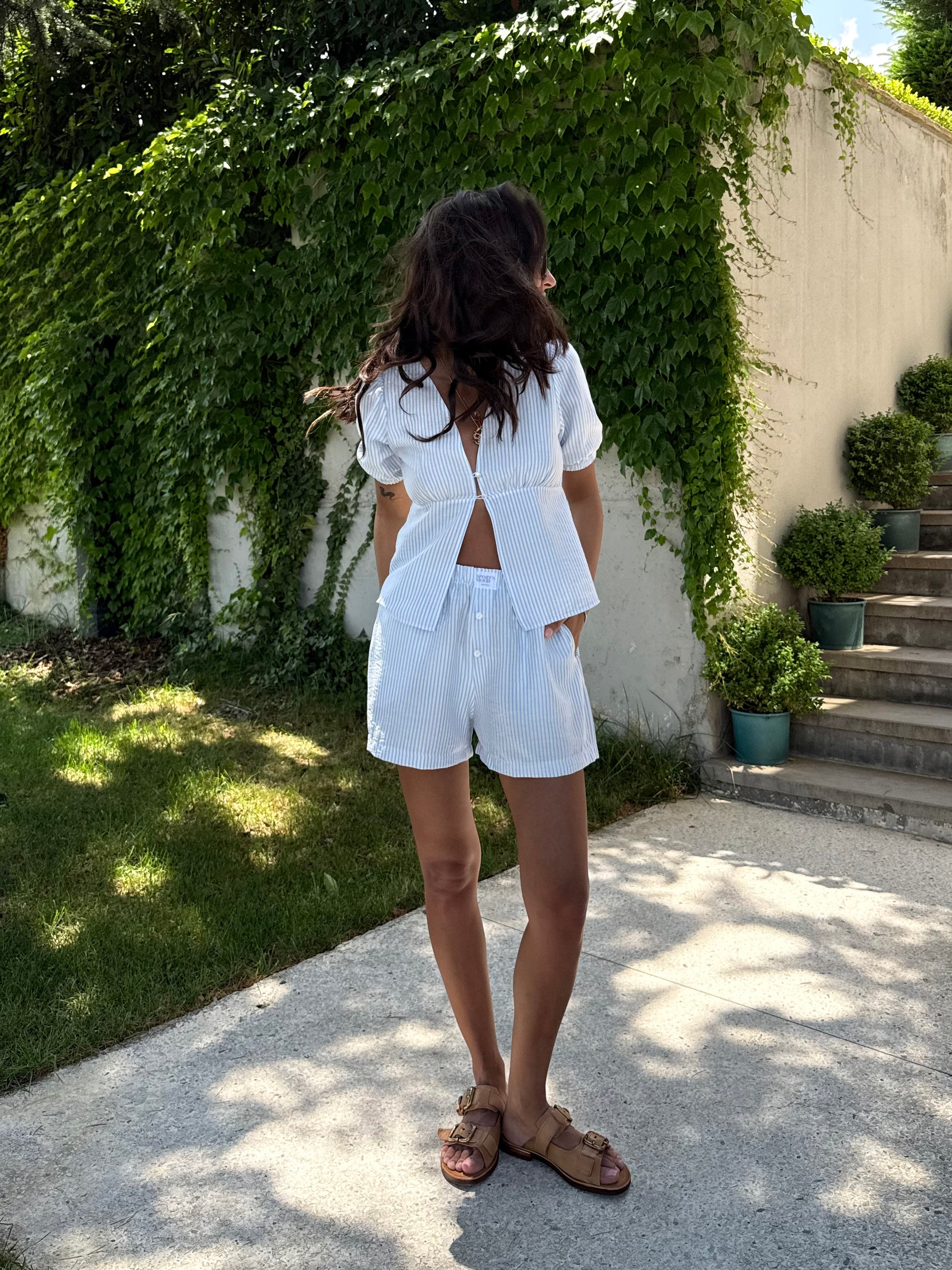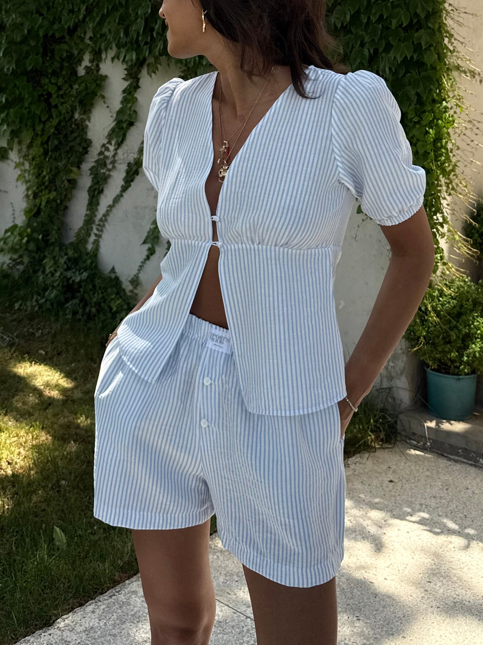 ტილოს მოსაცმელი ცისფერი ზოლებით
