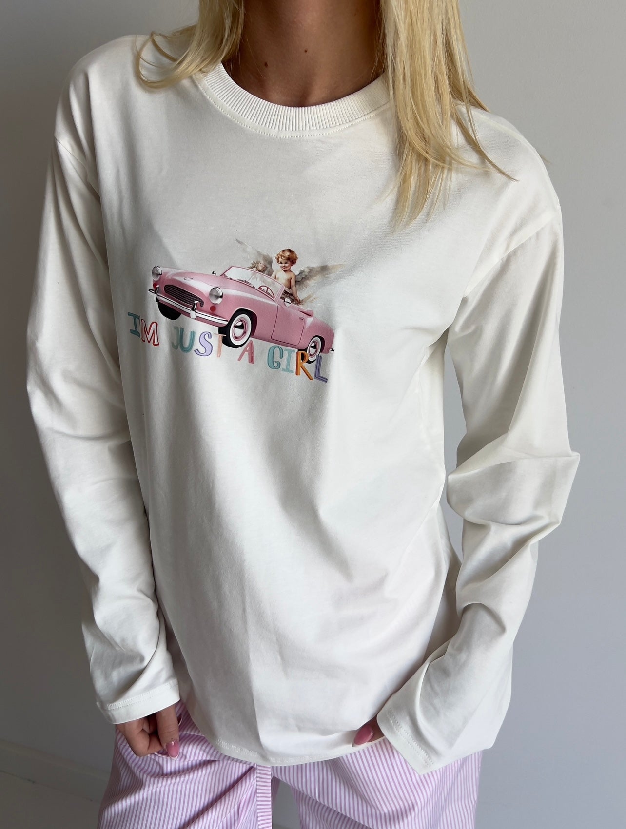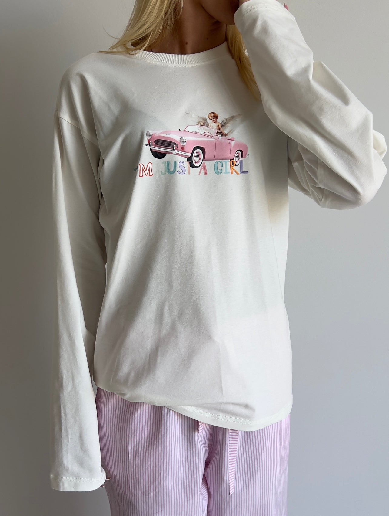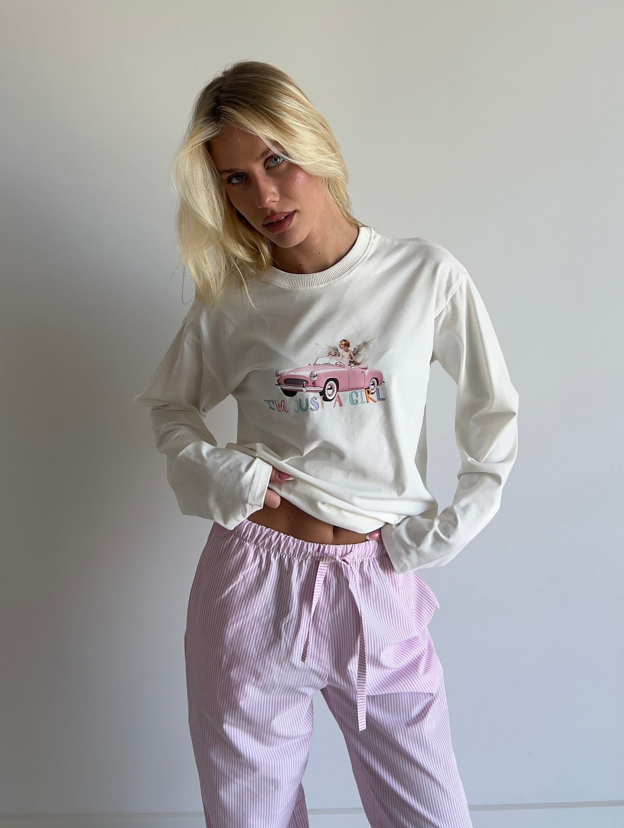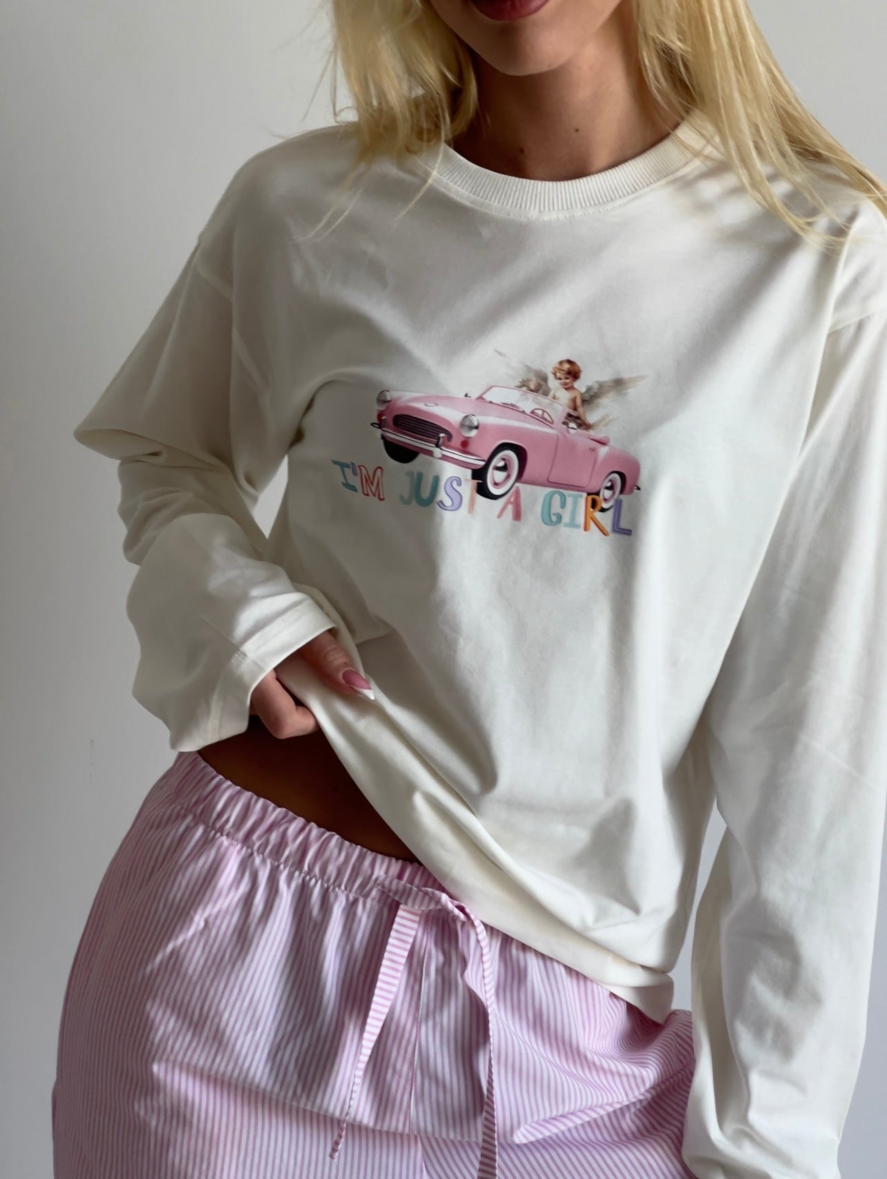 რძისფერი ბამბის გრძელმკლავიანი მაისური