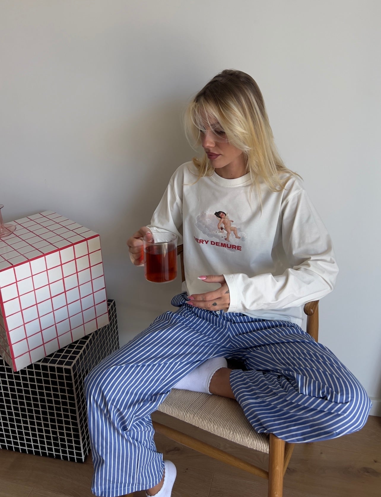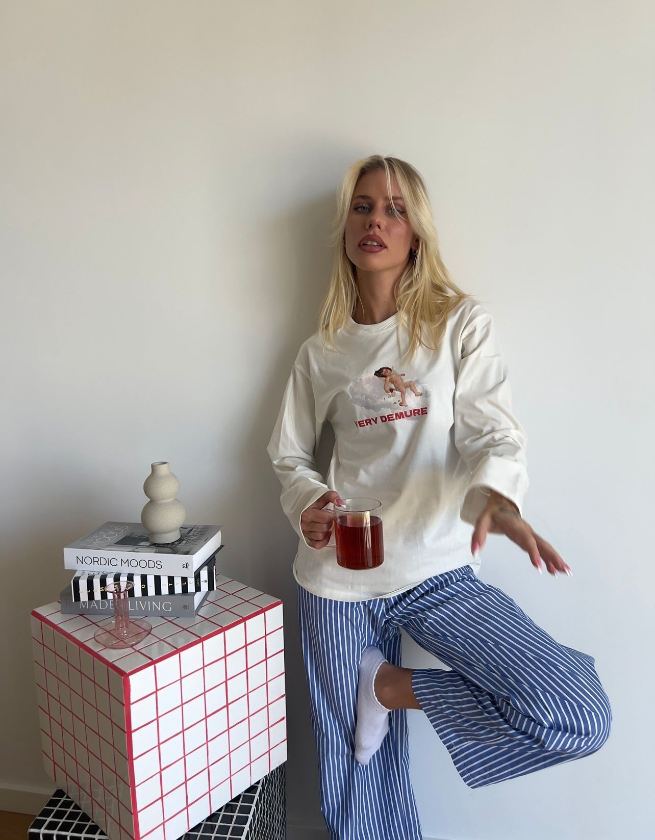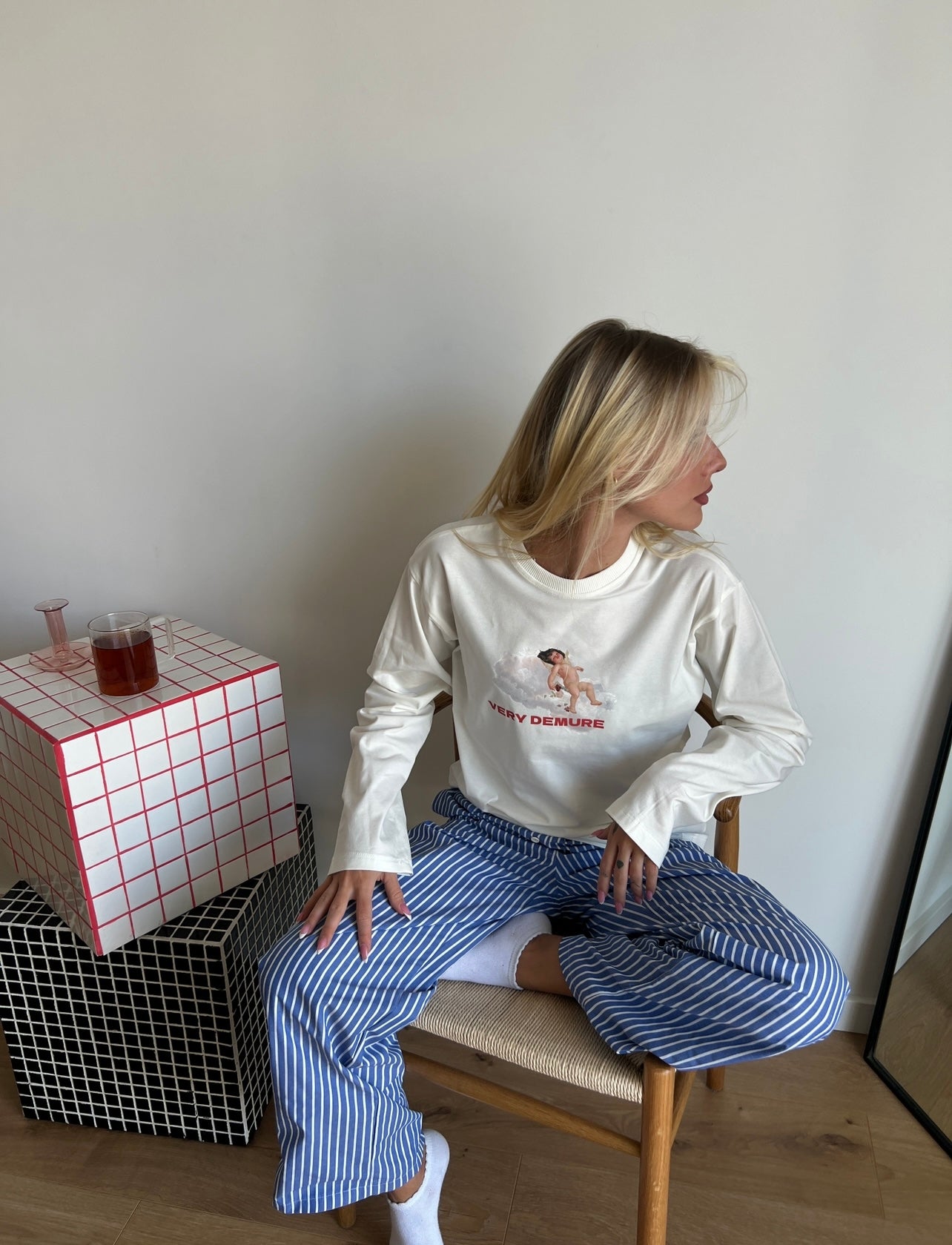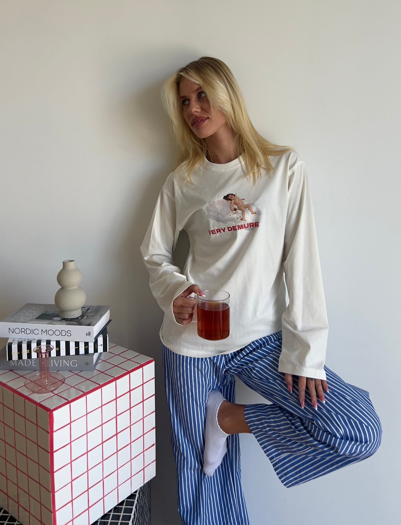 რძისფერი ბამბის გრძელმკლავიანი მაისური