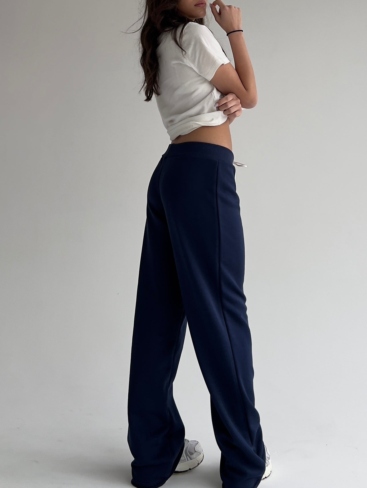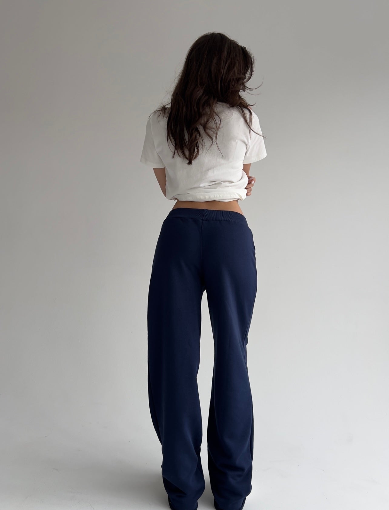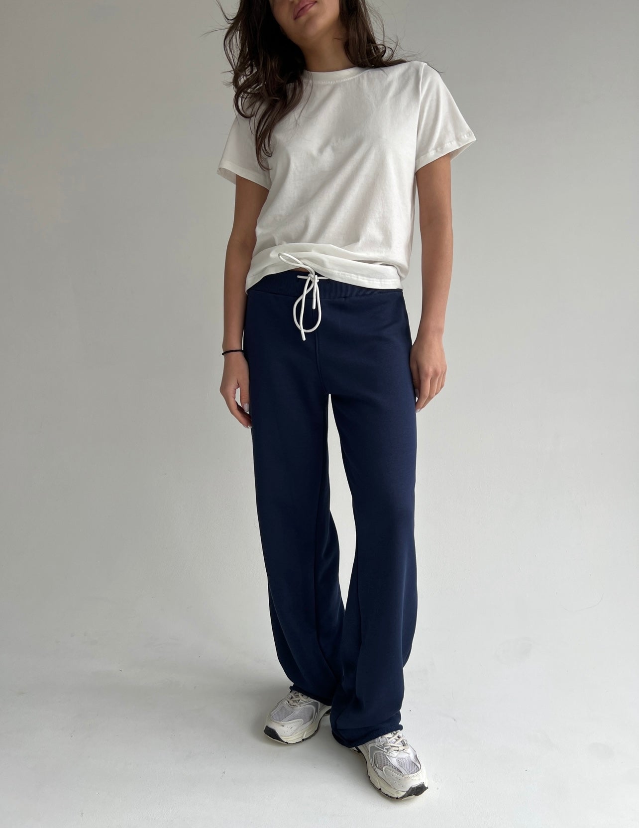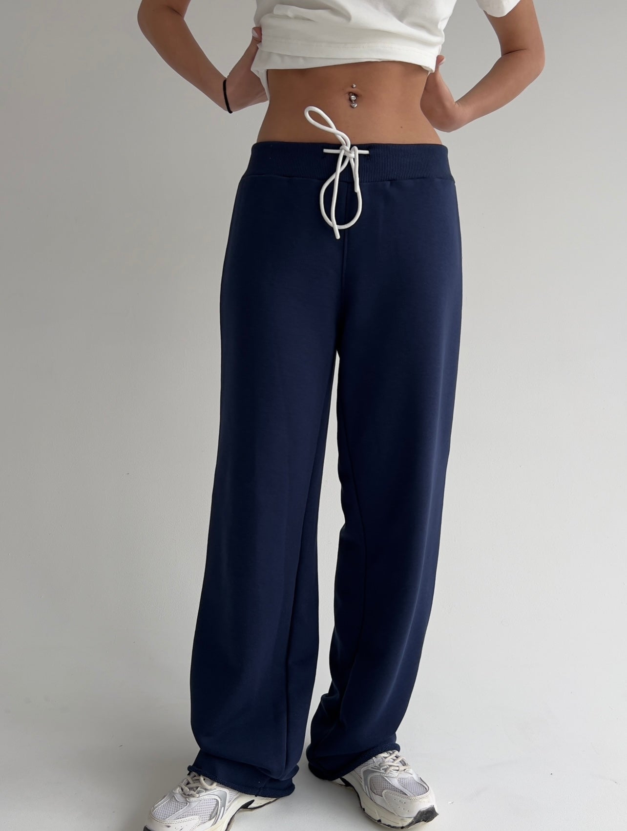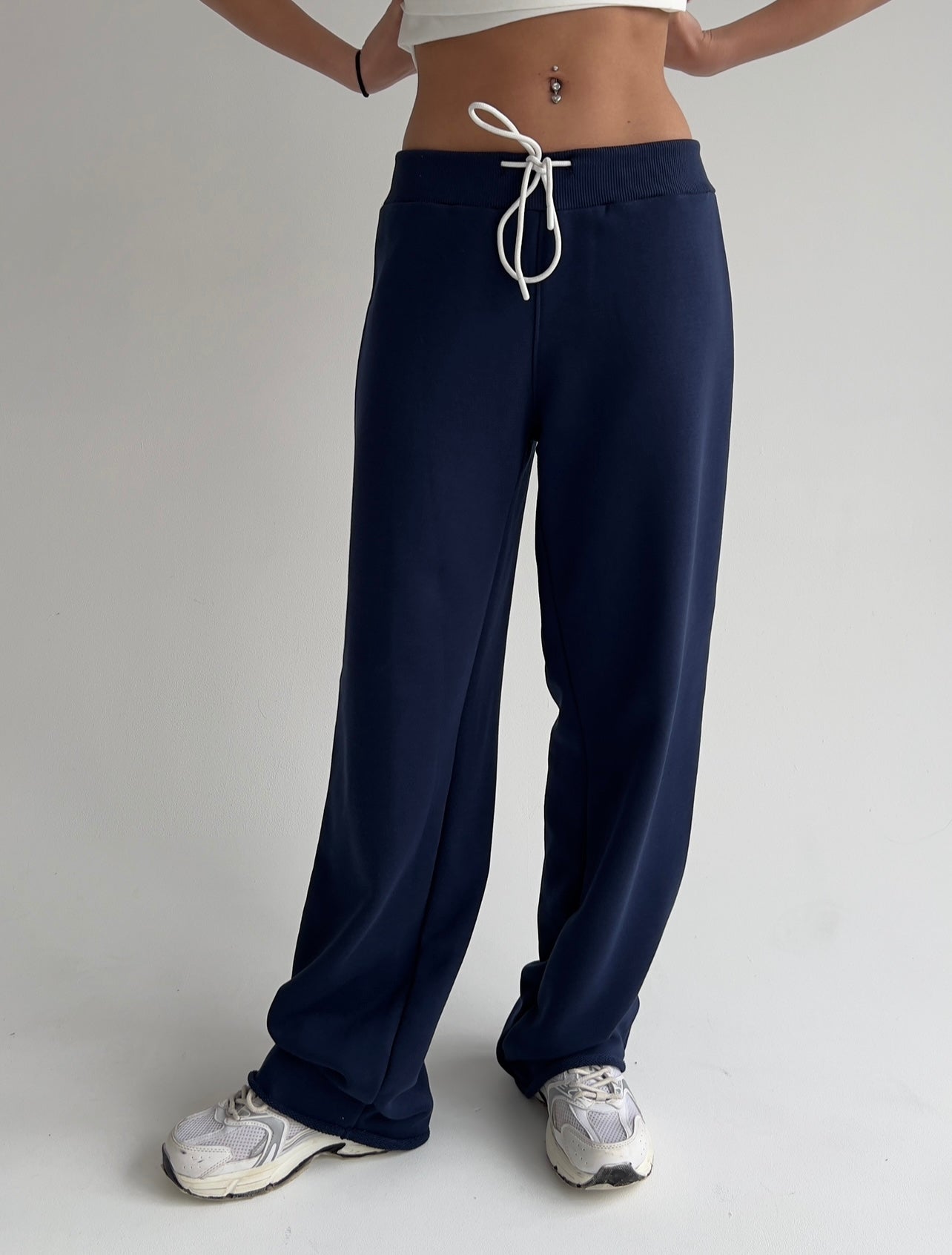მუქი ლურჯი სწორი სპორტული შარვალი მანჟეტის სათავით