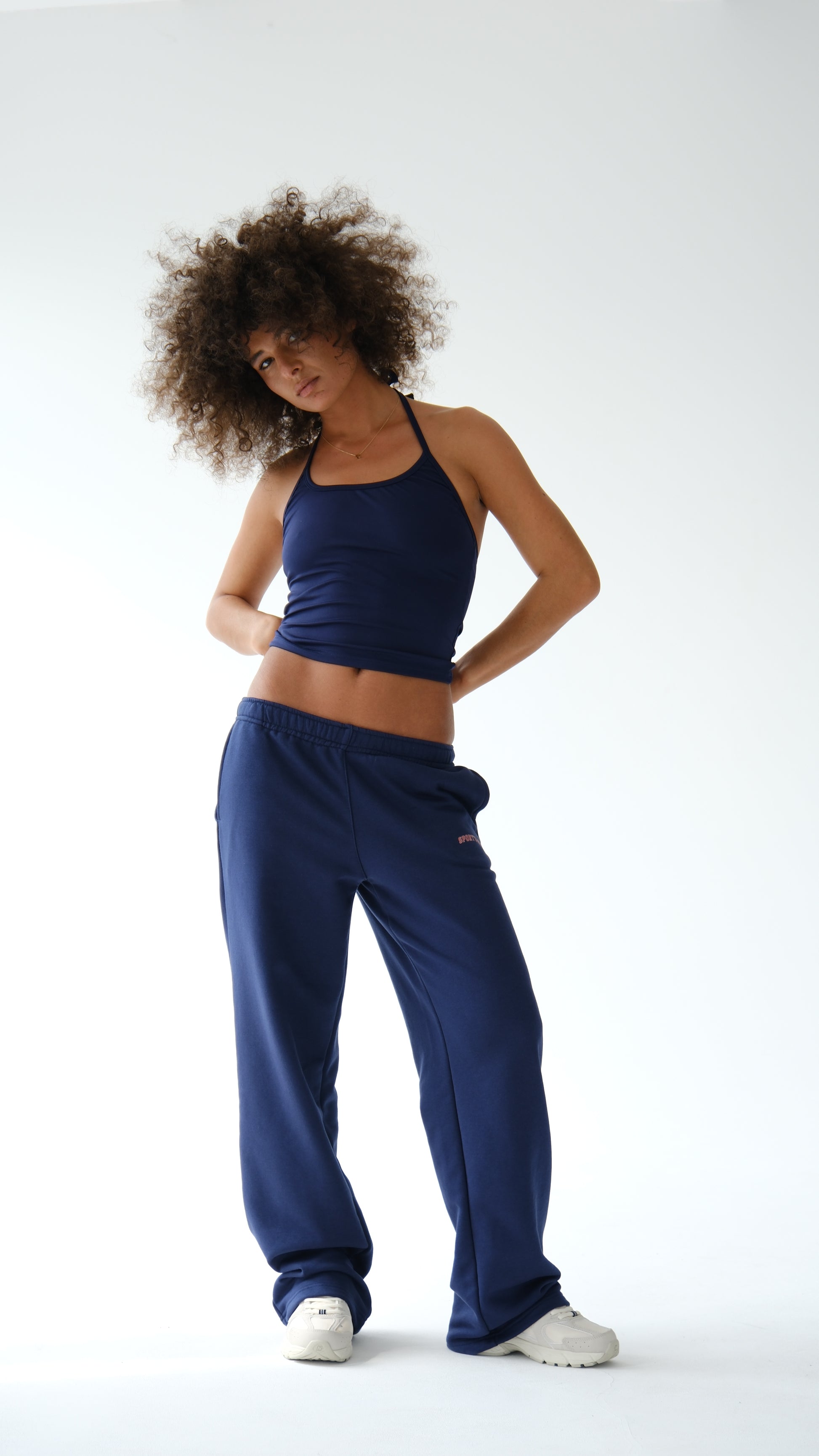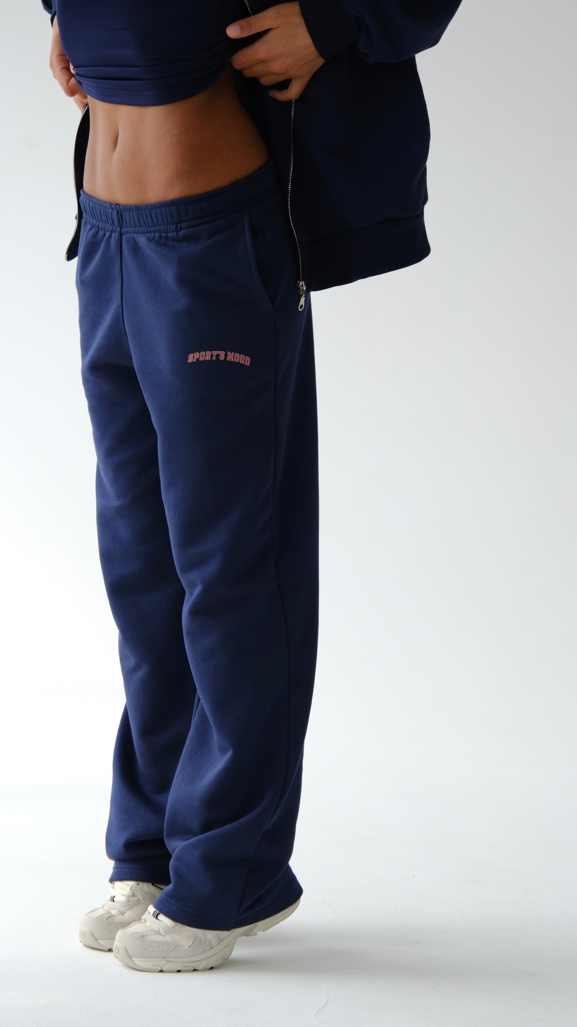 მუქი ლურჯი სწორი სპორტული შარვალი
