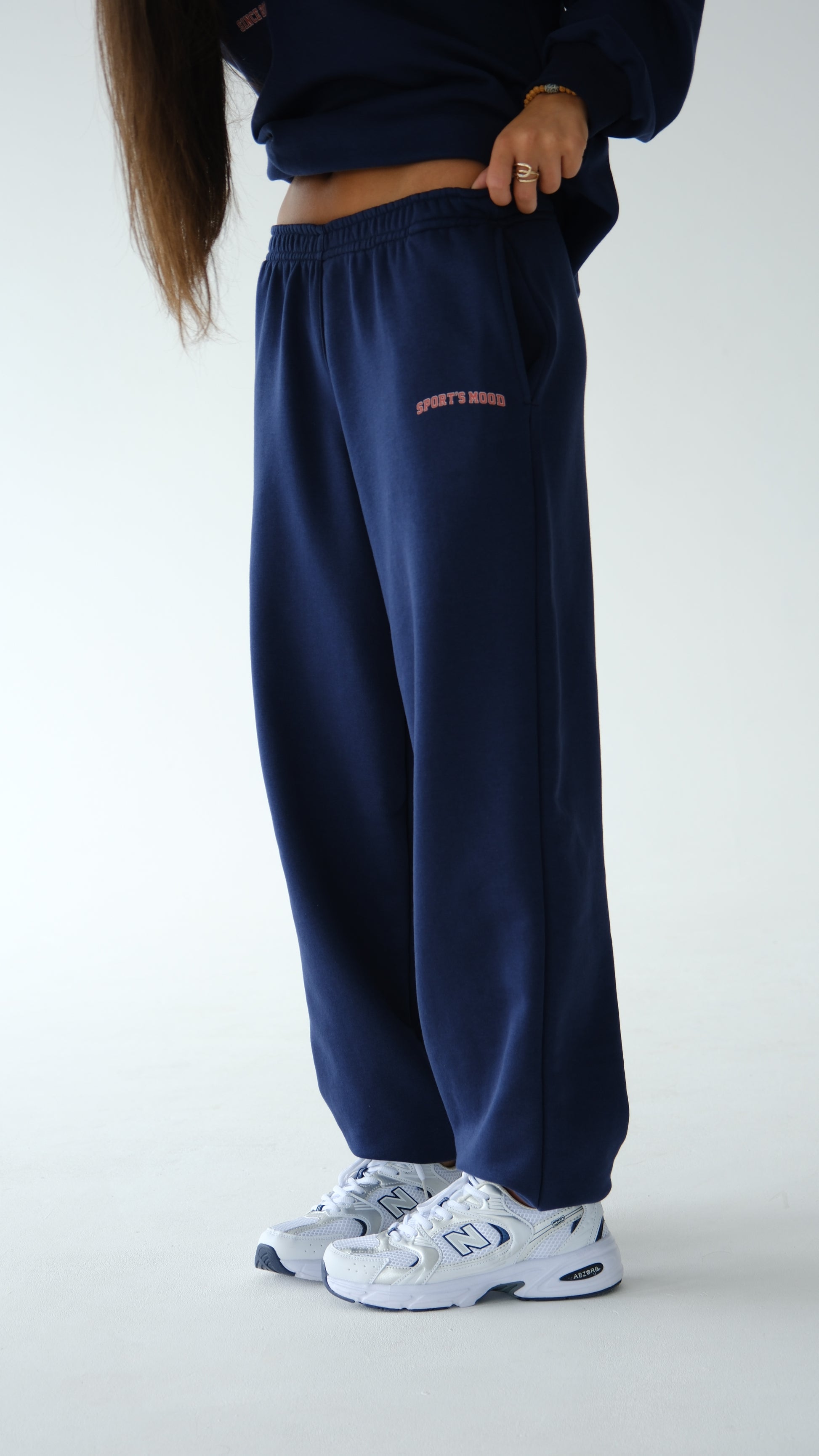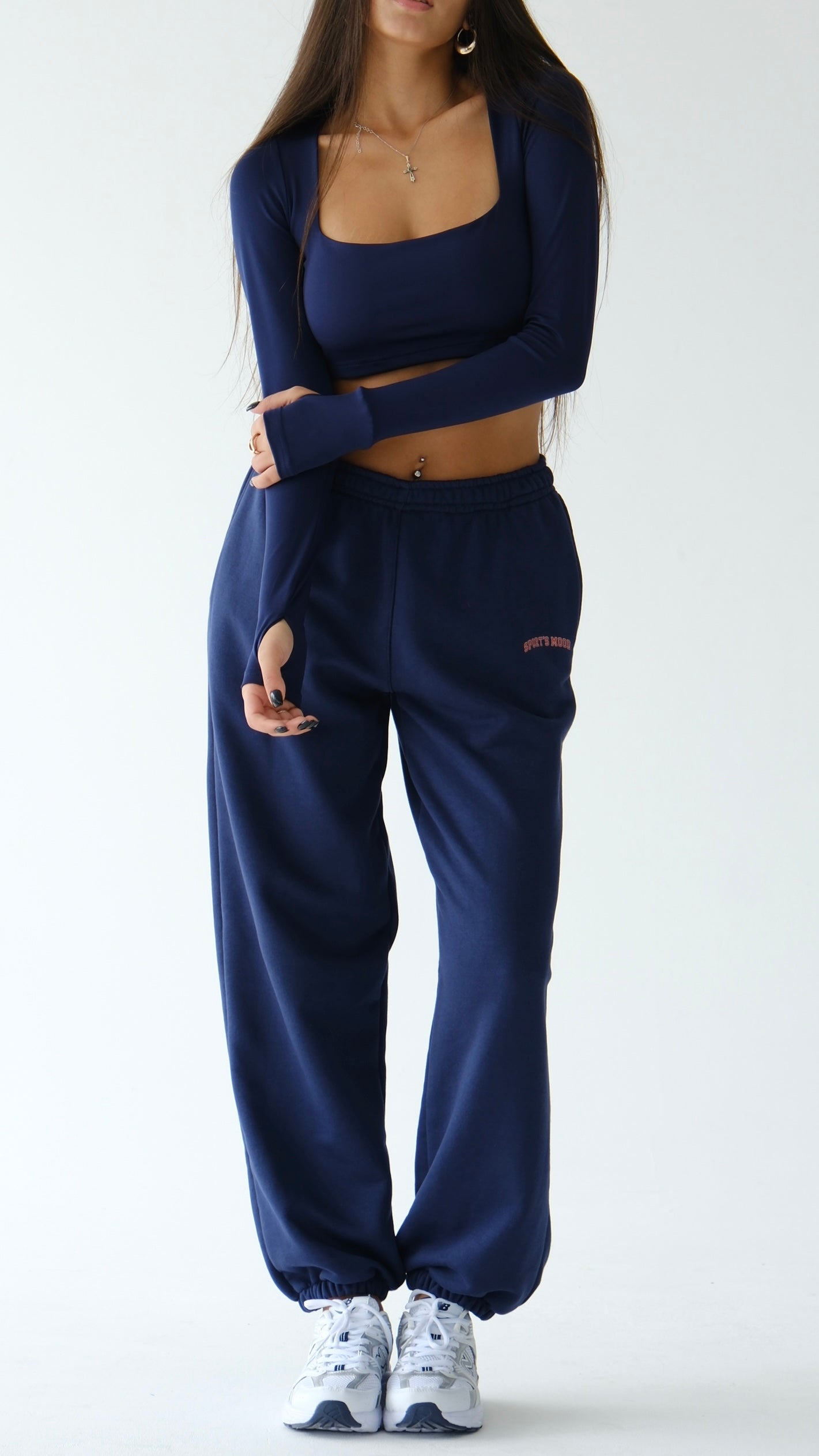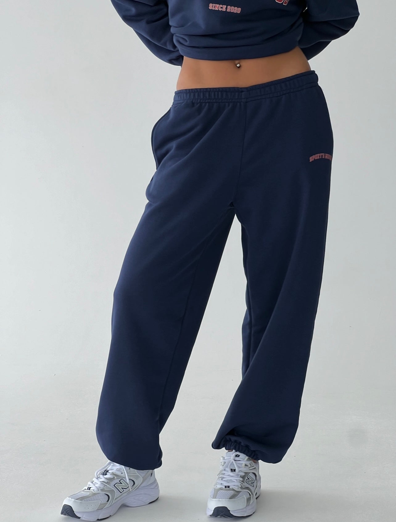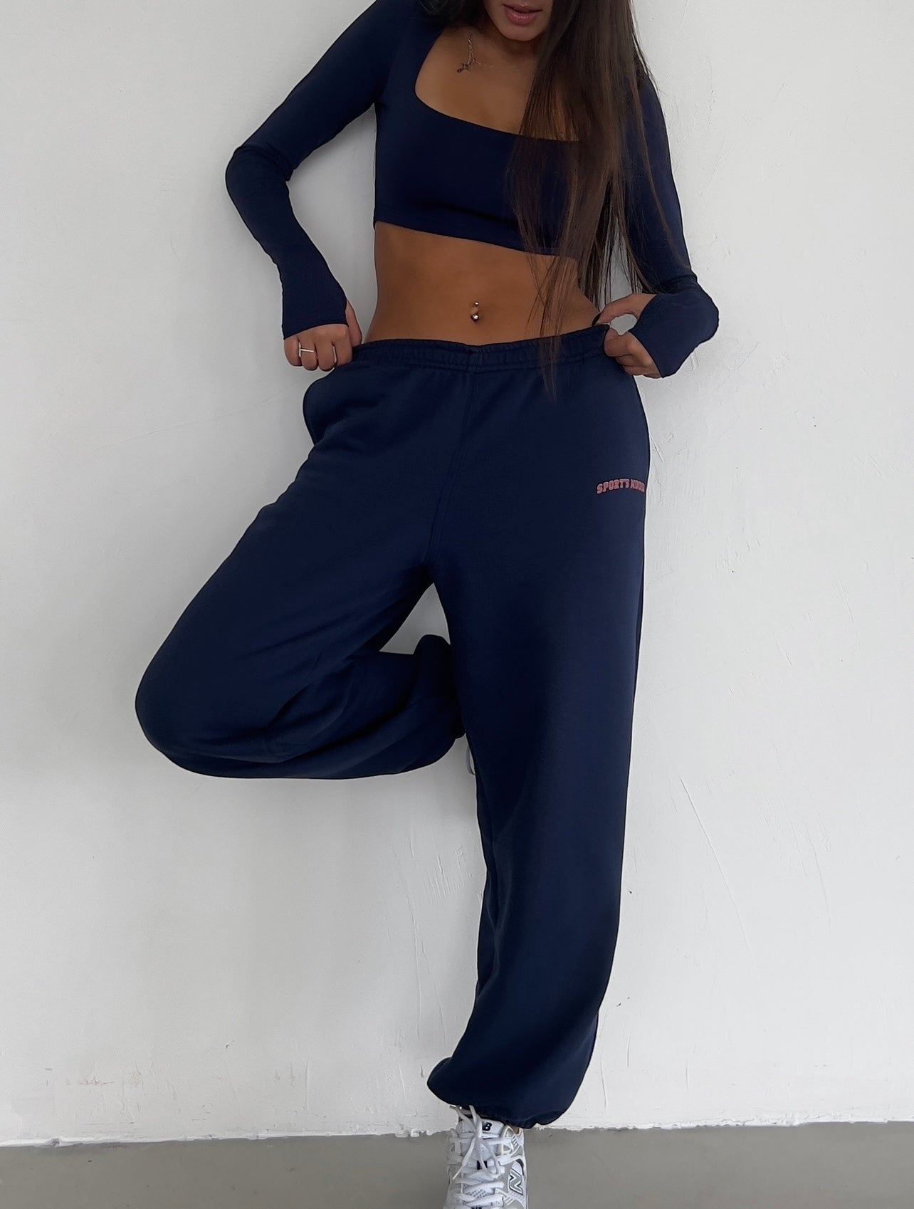მუქი ლურჯი სპორტული შარვალი რეზინის დაბოლოვებით