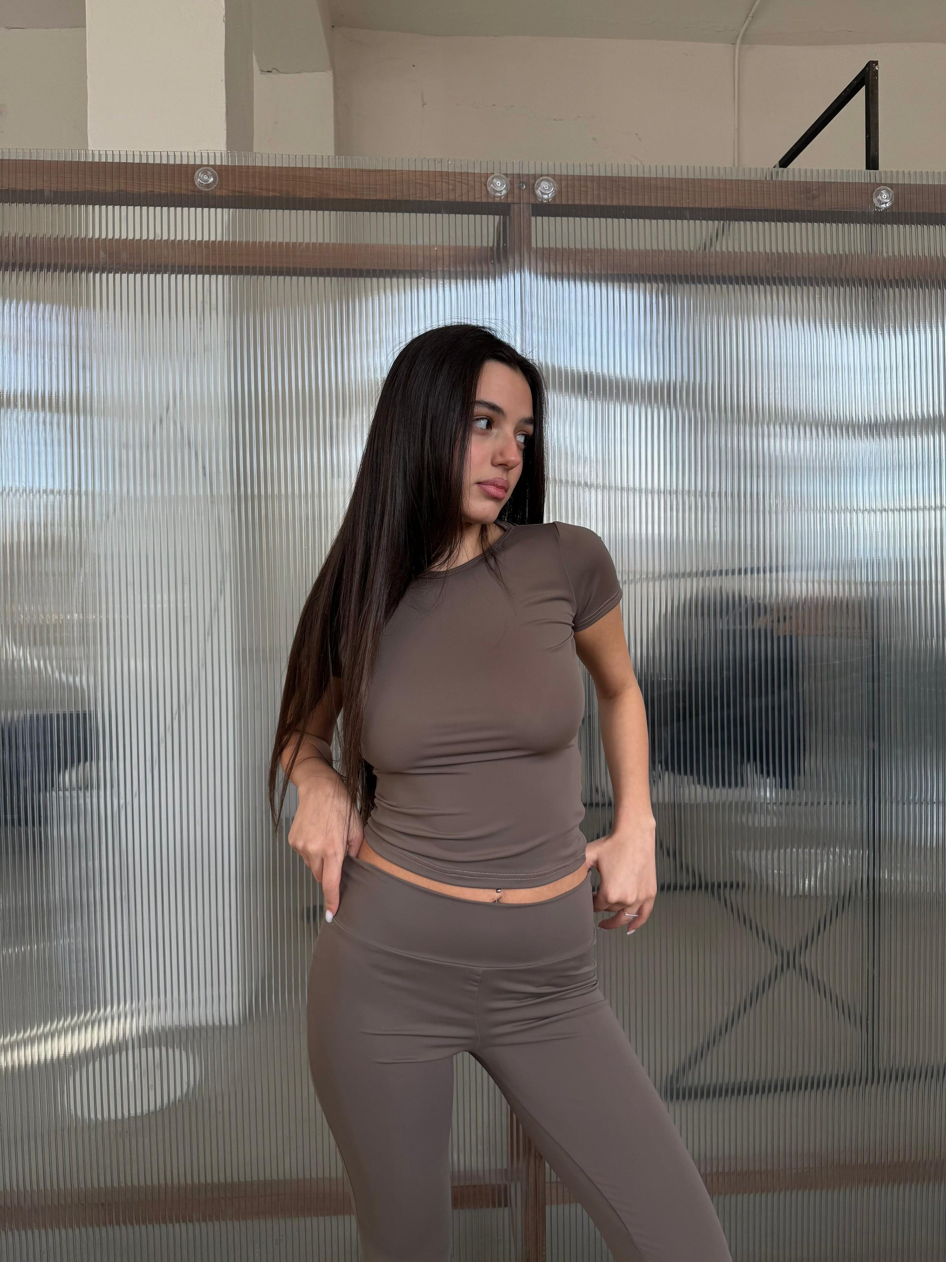 ეს მოკლემკლავიანი მაისური იმეორებს თქვენი სხეული ფორმად და დამზადებულია ძალიან წელვადი, რბილი ქსოვილისგან.
