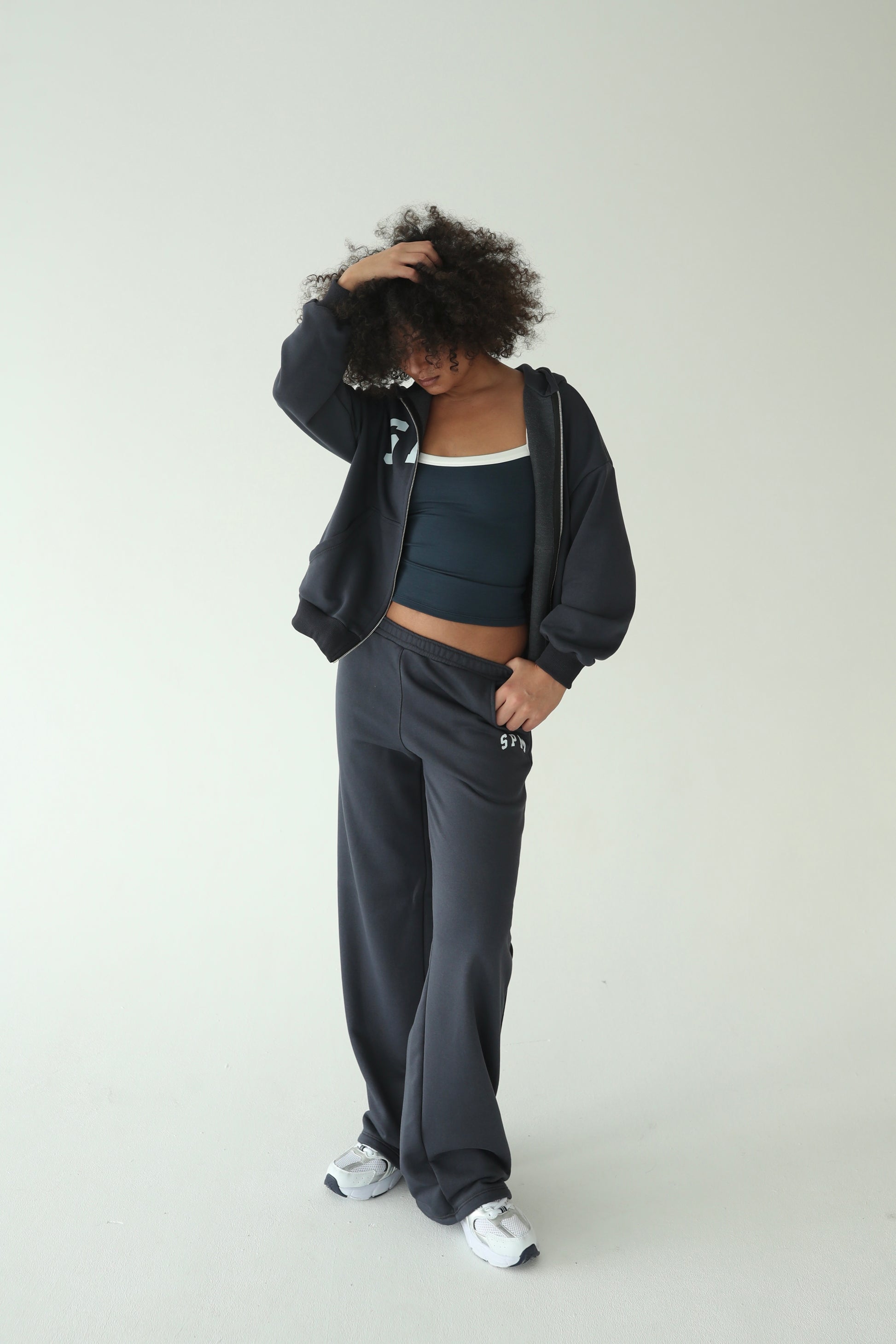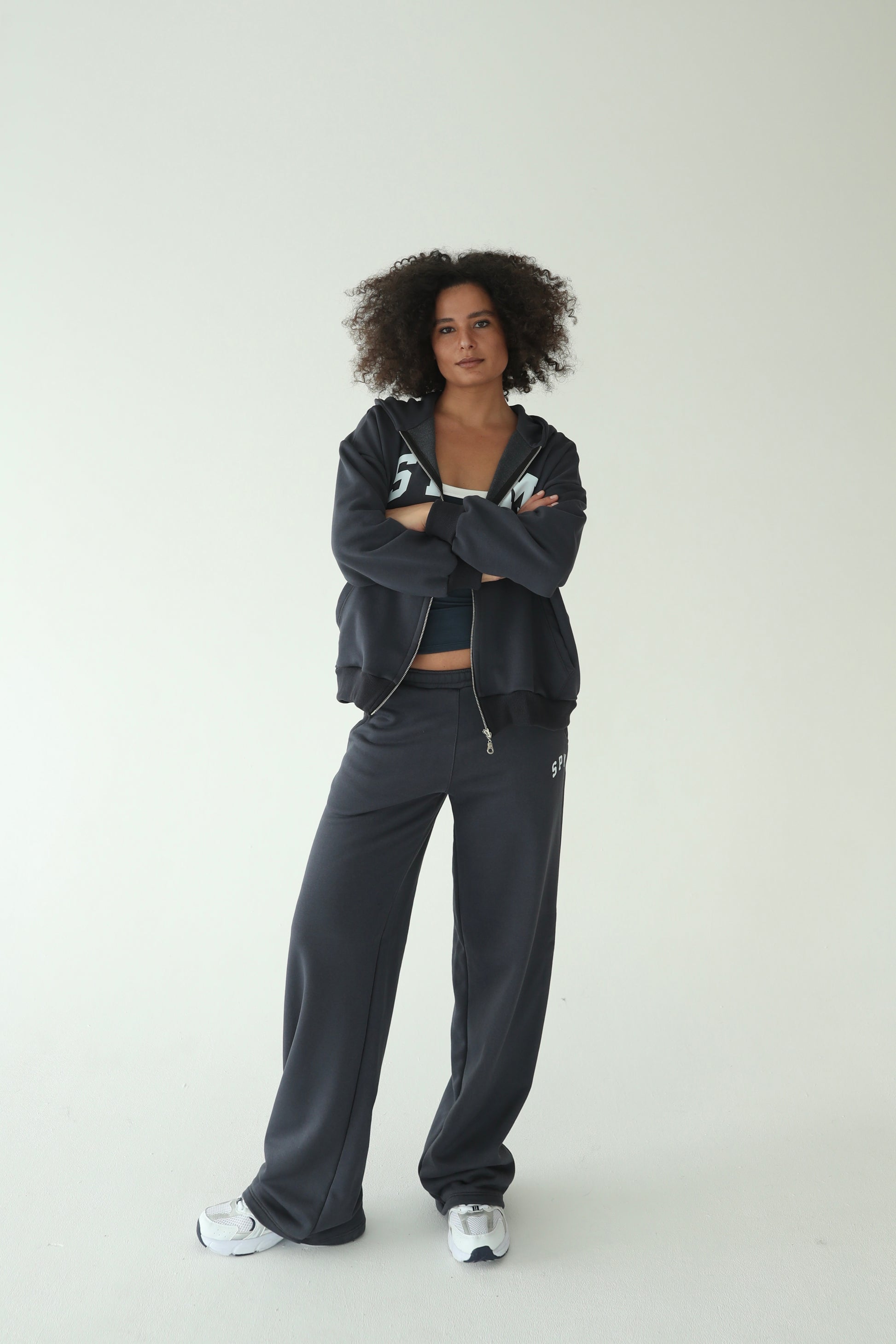 ნაცრისფერი სწორი სპორტული შარვალი